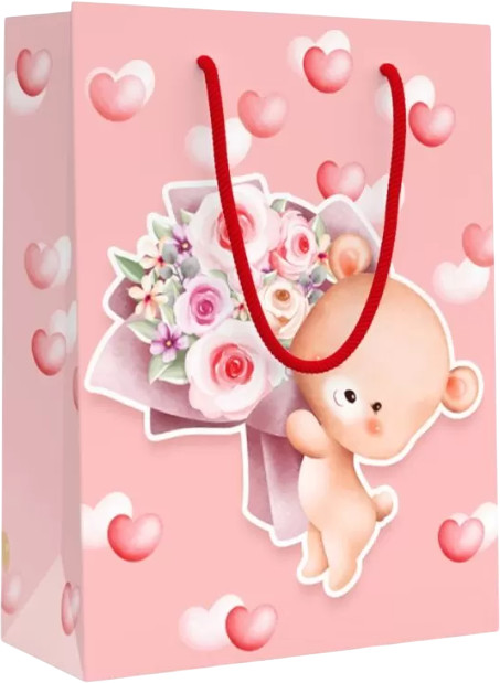 Горчаков Пакет подарочный «Мишка в сердечках с букетом»