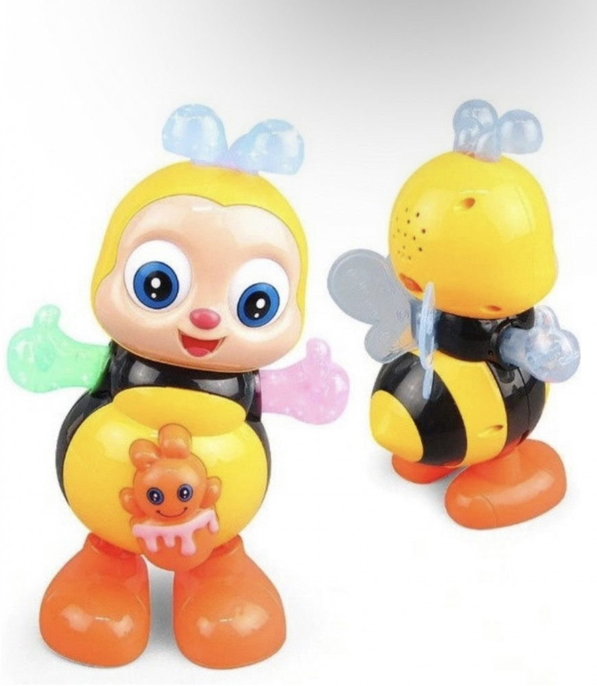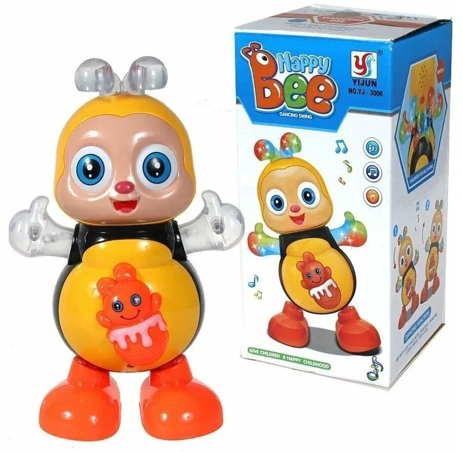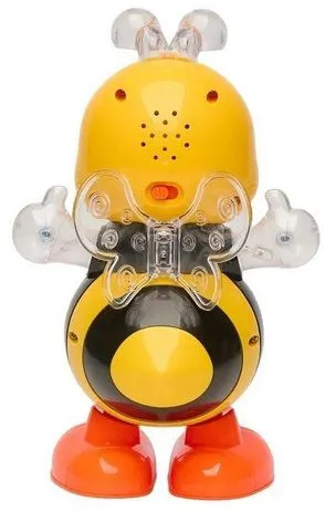 Забавная пчёлка привлечёт к себе внимание своим ярким внешним видом. Она интересно танцует под весёлую музыку, шагая в стороны и двигая своим корпусом. Во время движения у неё бегают глаза, и светиться подсветка разными огоньками. Игрушка подарит любому малышу много радостных минут. С такой игрушкой ребенок очень весело проведет время. В процессе игры развиваются речь, слуховое и цветовое восприятие, мелкая моторика, расширяется кругозор. Упакована в красочную подарочную коробку.