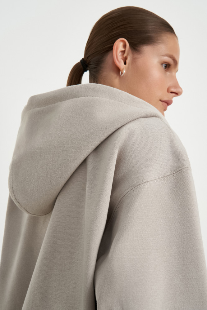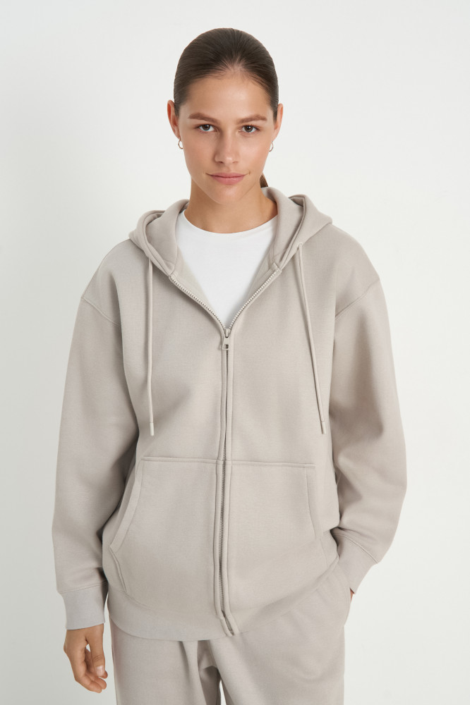 Базовое женское худи станет отличной альтернативой для кардигана или свитера в холодное время года. Прочный смесовый материал с добавлением хлопка обеспечит комфорт и долговечность изделия. Прямой силуэт гарантирует удобную посадку, не сковывает движений, а однотонный дизайн позволит легко сочетать модель с любым гардеробом. Ткань обладает хорошей эластичностью, что делает худи идеальным выбором для активного отдыха или повседневной носки. Капюшон и молния создают дополнительный уют и защиту от непогоды.