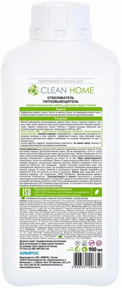 Мягкий отбеливатель-пятновыводитель удаляет пятна с белых и цветных тканей от чая, вина, кофе, зелени, фруктов, соков, крови, чернил и других красителей. Сохраняет яркость ткани. Удаляет неприятные запахи. Работает с любым моющим средством для автоматической и ручной стирки при температуре от +30°С до +90°С. Clean Formula ДНК — действительно необходимый компонент, обеспечивающий ультраочищение — пероксид водорода, взаимодействуя с загрязнением, распадается на активный кислород и воду, позволяя эффективно очищать ткани. Благодаря этому достигается максимальный эффект отбеливания не оказывая воздействия на цвет и волокна ткани. Состав средства содержит биоразлагаемые компоненты. Не наносит вреда человеку и природе при условии использования по назначению.