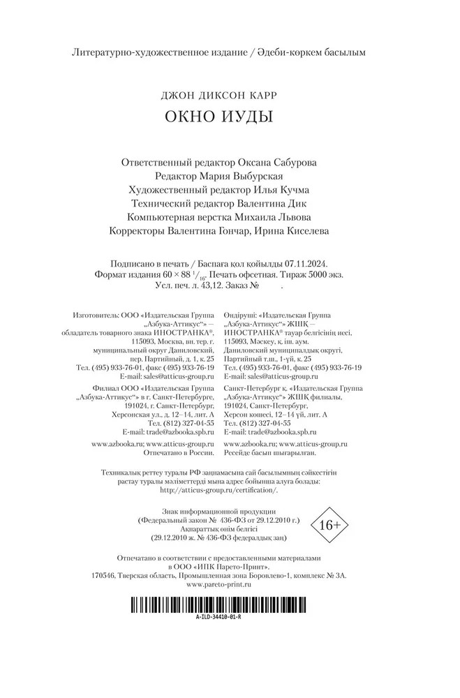 💳 Оплатить за товар можно при получении 🇰🇿 Есть бесплатная доставка по Казахстану 🎁 Копите бонусы с каждой покупки Серия: Иностранная литература. Классика детектива Золотой век детектива оставил немало звездных имен — А. Кристи, Г. К. Честертон, Г. Леру и др. В этой яркой плеяде Джон Диксон Карр (1906–1977) занимает самое почетное место. «Убийство в запертой комнате», где нет места бешеным погоням и перестрелкам, а круг подозреваемых максимально ограничен, — излюбленный прием автора. Карр заманивает читателя в сети ловко расставленных ловушек, ложных подсказок, обманных ходов и тонких намеков и предлагает принять участие в решении хитроумной головоломки. |