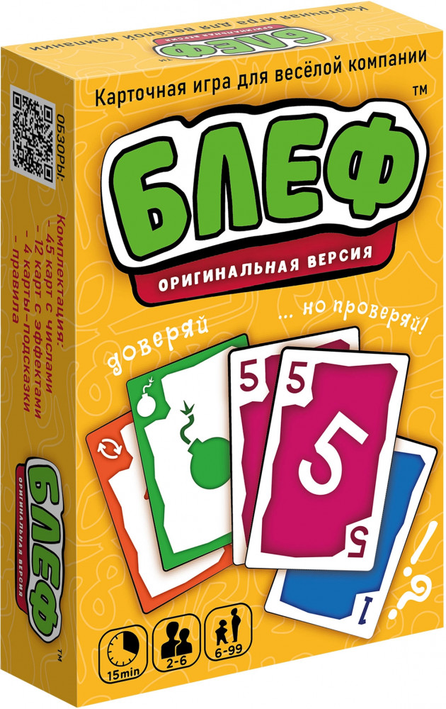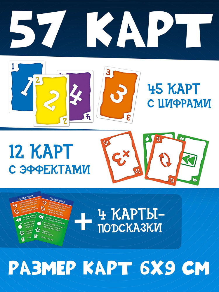 Красочная и яркая настольная игра — прекрасный способ весело и с пользой провести время с друзьями и в кругу семьи. Цель игры — сбросить карты раньше других игроков. Блеф предполагает наличие стратегии, интуиции и умения анализировать поведение соперников. Красивые иллюстрации привлекут внимание ребенка. Оригинальная настольная игра поможет весело и интересно провести время. Настольная игра развивает навыки актерского мастерства, ведь участникам придется притворяться, чтобы ввести остальных в заблуждение. Все элементы игры выполнены из качественных и прочных материалов, окрашены безопасными нетоксичными красками, устойчивыми к износу и выгоранию. |