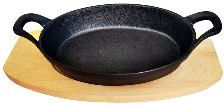 Сковорода порционная чугун 16 см овальная с 2 ручками на подставке TM My Real Iron Cook. Сковорода порционная чугунная с двумя ручками на подставке TM My Real Iron Cook выполнена из высококачественного литого чугуна, имеет толстые стенки и дно, способствует равномерному приготовлению блюд без пригорания. Чугун очень хорошо аккумулирует тепло и сохраняет его долгое время, соответственно, блюдо намного дольше остается горячим. Чугун является экологически чистым материалом . Пища — приготовленная в чугунной посуде будет вкуснее и ароматнее, а также сохранит все полезные свойства продуктов. Подходит для всех типов плит. Запрещено использование в посудомоечной машине. Перед первым использованием, чугунную посуду необходимо предварительно подготовить к эксплуатации в соответствии с инструкцией в разделе использование и уход.