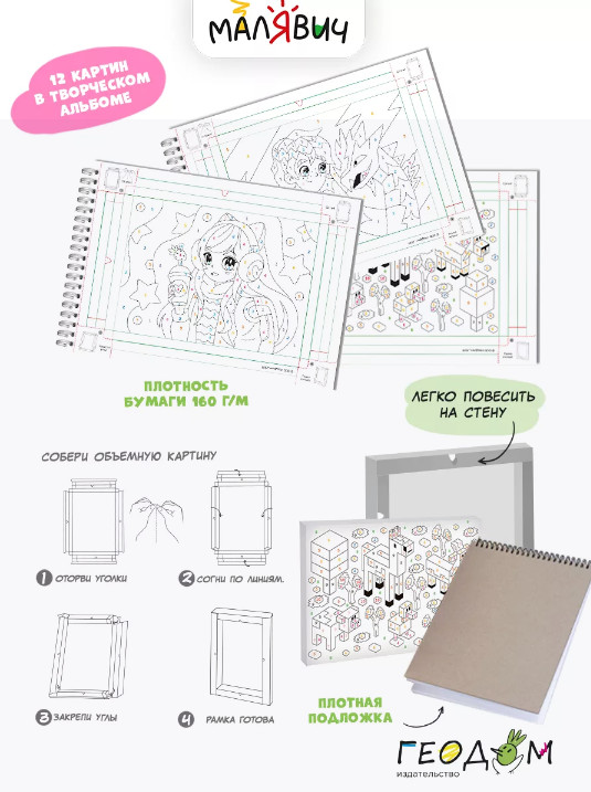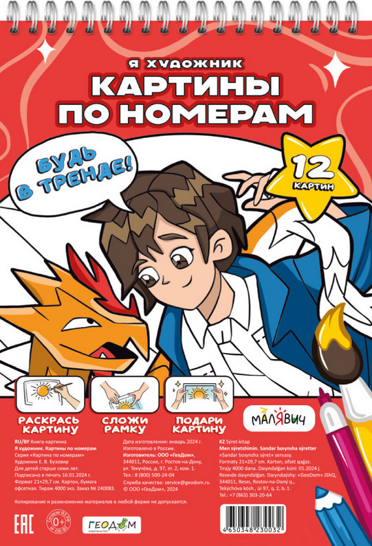 Раскраска «Я художник»В данный момент этот товар отсутствует в продаже. Возможно, у нас найдется аналогичный или похожий товар здесь. Серия: Картины по номерам Набор раскрасок по номерам для детей от Геодом — занимательная книжка раскраска для мальчиков и девочек, состоящая из 12 картин по номерам. А данном творческом альбоме «Я художник» представлены самые любимы и популярные темы: Аниме, minecraft, пиксели, космос, дудлы. Подходит для рисования акварелью, цветными карандашами, красками. Альбом на спирали с твердой подложкой имеет удобный формат А4. Благодаря плотной подложке раскрашивать картины легко и удобно не только за столом, но и брать с собой в дорогу, поездку, гости. Раскрашивание по номерам помогает запомнить цифры, развивает творческое мышление, усидчивость и мелкую моторику. Разукрашка антистресс — станет отличным времяпровождением досуга ребенка, отвлечет его от телефона. Плотные листы трансформируются в объёмную картину, которой можно украсить комнату ребенка. А ещё готовая картина станет отличным подарком на день рождение, 8 марта, новый год для родных и близких: маме, папе, бабушке, дедушке. Проводите время вместе — весело и интересно! |