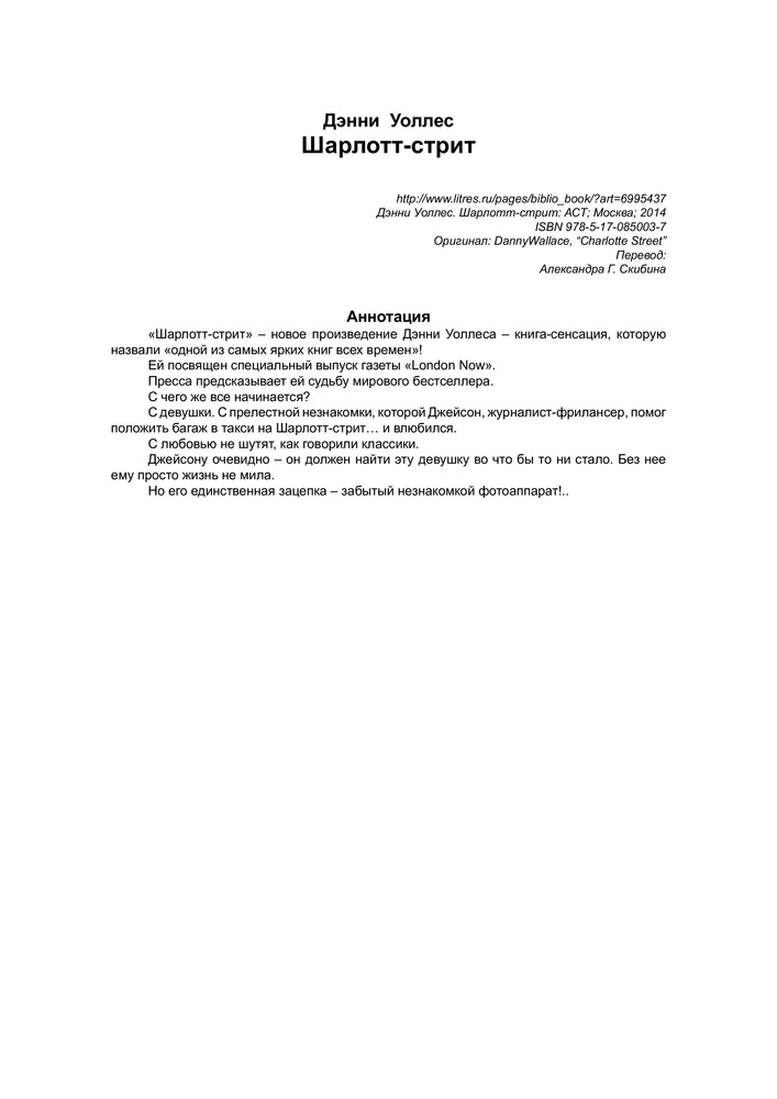 В данный момент этот товар отсутствует в продаже. Возможно, у нас найдется аналогичный или похожий товар здесь. Серия: Сенсация «Шарлотт-стрит» – новое произведение Дэнни Уоллеса – книга-сенсация, которую назвали «одной из самых ярких книг всех времен»! Ей посвящен специальный выпуск газеты «London Now». Пресса предсказывает ей судьбу мирового бестселлера.