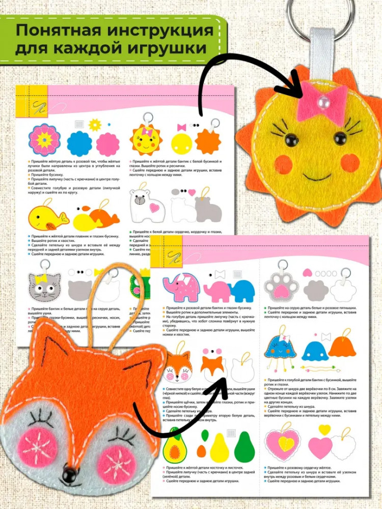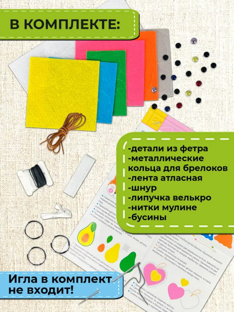 Игла в комплект не входит! Работа с иглой производится под наблюдением взрослых! Размер игрушки около 5 × 5 см. Не предназначено для детей младше 3 лет.