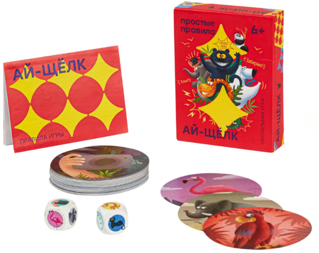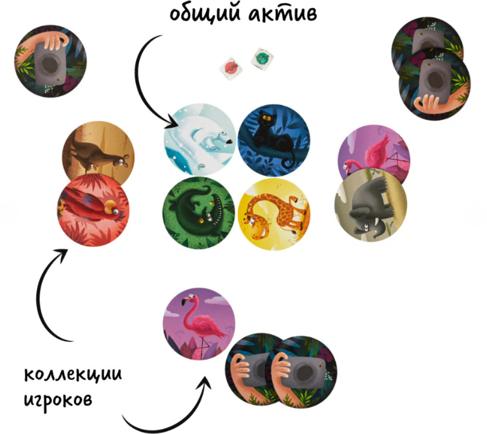 Бум! Хлоп! Щёлк! Это фотоохота! Кидаем кубики, быстро накрываем карточки с выпавшими животными, забираем себе. Будьте осторожны! Соперники готовы стащить лучшие экземпляры! Победа достанется самому быстрому и внимательному — закон джунглей! Внимание! Игра активирует суперспособности: внимание, реакция |