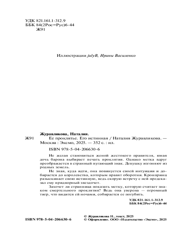 Серия: Огни Литгорода. Лучшее романтическое фэнтези Не желая становиться женой жестокого правителя, юная дочь барона выбирает печать проклятия. Однако метка вдруг преображается в странный пугающий знак. Девушку изгоняют из родных земель. Не зная, куда идти, она повинуется своей интуиции и добирается до королевства, которым правят оборотни. Кронпринц разыскивает свою истинную, ведь скорую встречу с ней предсказал ему придворный звездочет. Захочет ли странница показать метку, которую считает знаком смертельного проклятия? Ведь она уверена: огромный тигр, что видится ей ночами, собирается ее погубить. |