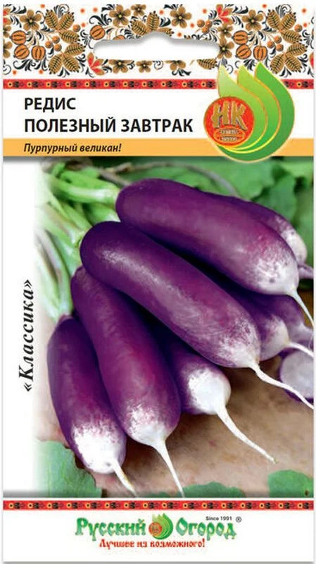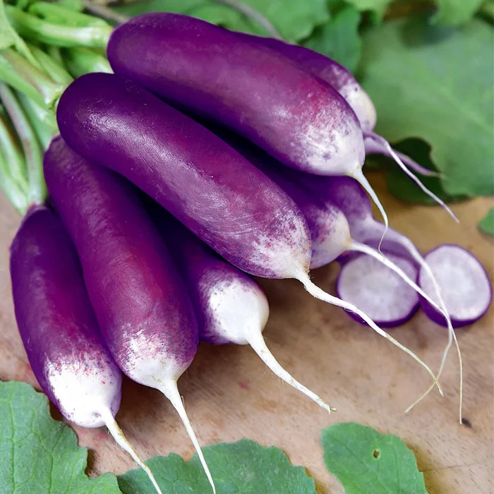Высокоурожайный ранний редис, период от полных всходов до технической спелости 21-25 дней. Крупные цилиндрические корнеплоды достигают в длину 10 см! Розетка листьев полупрямостоячая. Корнеплод удлиненно-цилиндрический с фиолетовой верхней частью и белым кончиком, массой до 20 г. Мякоть плотная, сочная, неострая, пикантно-сладкая. Благодаря высокому содержанию антоцианов оказывает благотворное влияние при повышенном давлении, высоком холестерине, сердечно-сосудистых и воспалительных заболеваниях. Просто кладезь здоровья! |