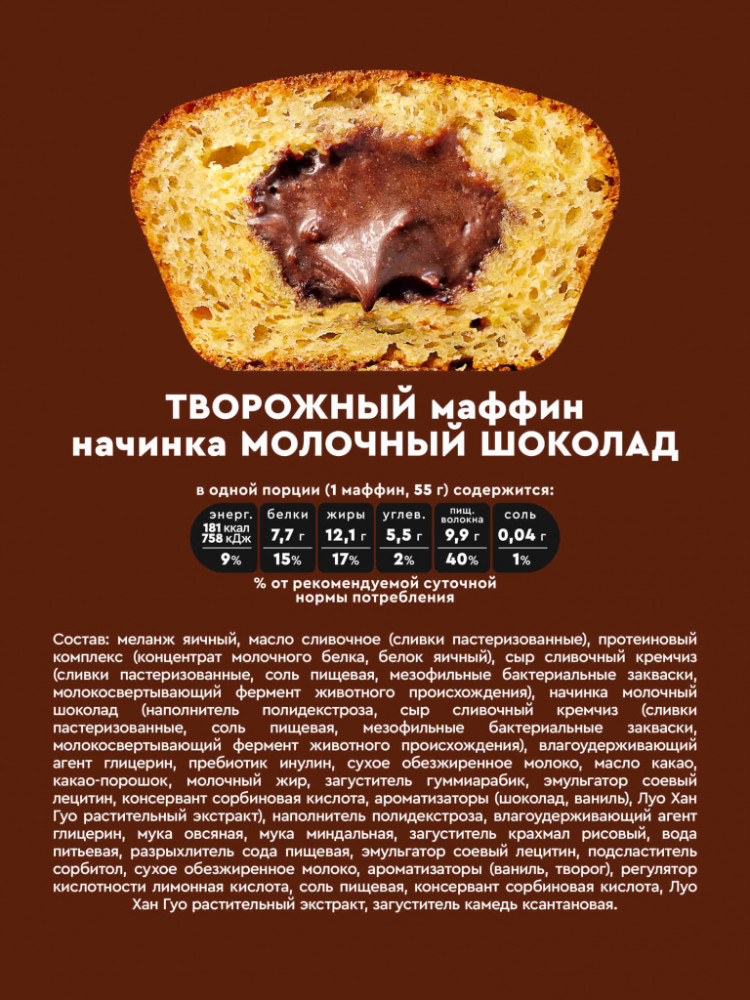 Mr. Djemius ZERO Маффин творожный начинкой молочный шоколад