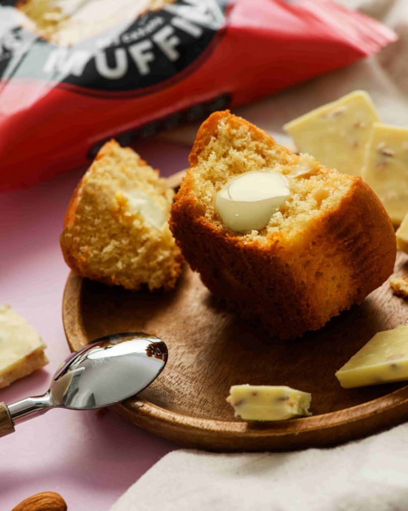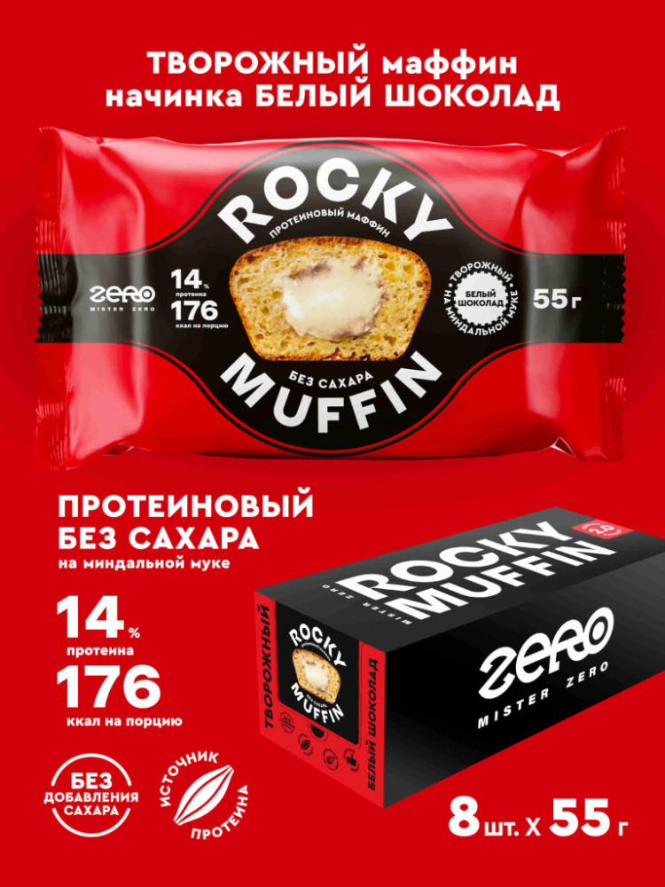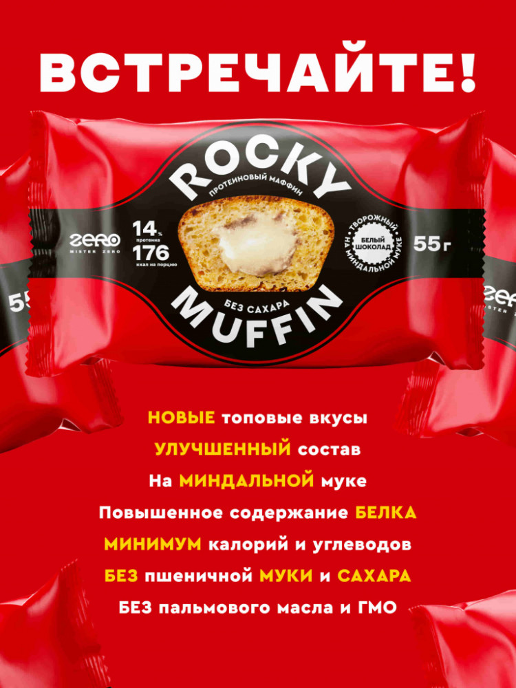 Меланж яичный, масло сливочное (сливки пастеризованные), протеиновый комплекс (концентрат молочного белка, белок яичный), сыр сливочный кремчиз (сливки пастеризованные, соль пищевая, мезофильные бактериальные закваски, молокосвертывающий фермент животного происхождения), начинка белый шоколад (наполнитель полидекстроза, сыр сливочный кремчиз (сливки пастеризованные, соль пищевая, мезофильные бактериальные закваски, молокосвертывающий фермент животного происхождения), влагоудерживающий агент глицерин, пребиотик инулин, сухое обезжиренное молоко, масло какао, молочный жир, загуститель гуммиарабик, эмульгатор соевый лецитин, консервант сорбиновая кислота, ароматизаторы (белый шоколад, ваниль), Луо Хан Гуо растительный экстракт), наполнитель полидекстроза, влагоудерживающий агент глицерин, мука овсяная, мука миндальная, загуститель крахмал рисовый, вода питьевая, разрыхлитель сода пищевая, эмульгатор соевый лецитин, подсластитель сорбитол, сухое обезжиренное молоко, ароматизаторы (ваниль, творог), регулятор кислотности лимонная кислота, соль пищевая, консервант сорбиновая кислота, Луо Хан Гуо растительный экстракт, загуститель камедь ксантановая.