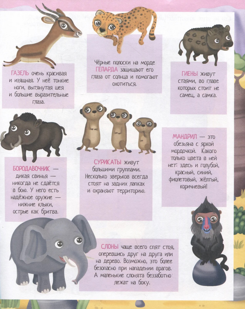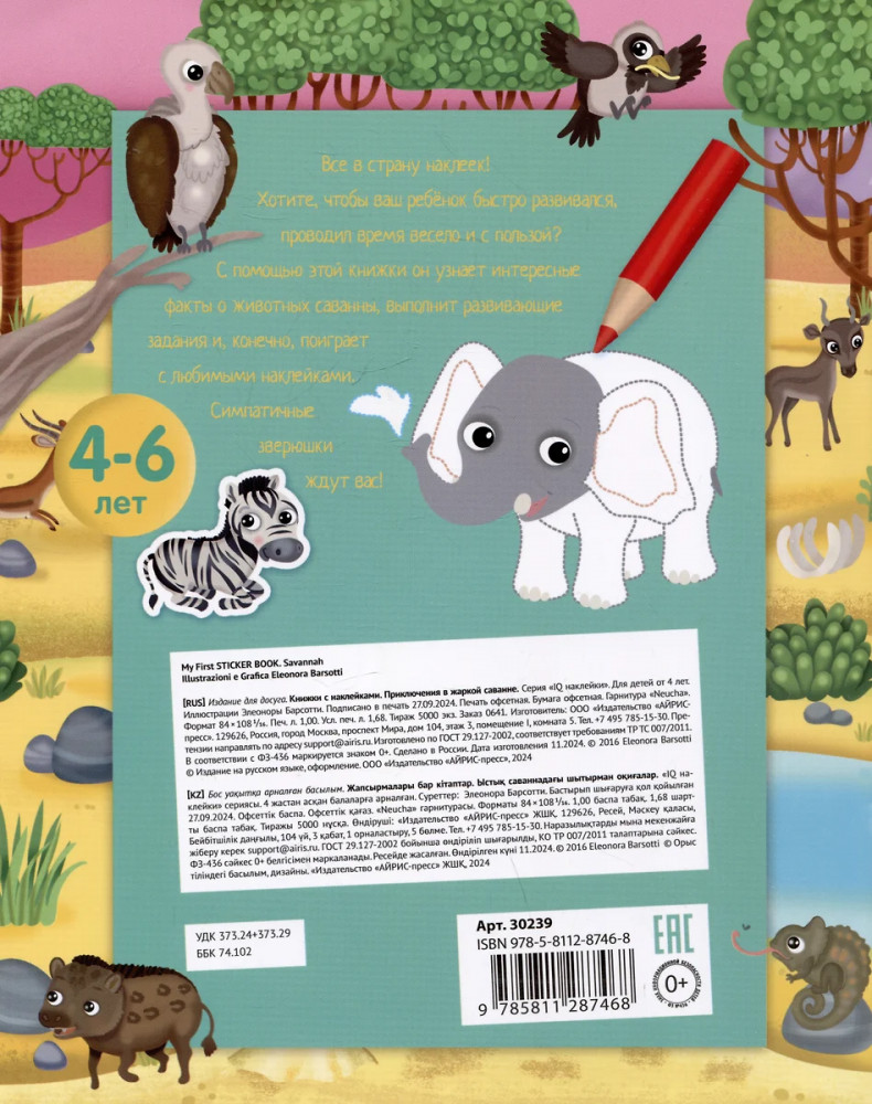 Серия: Книжки с наклейками С помощью этой книжки ребёнок узнает много интересного о животных саванны. Выполняя игровые задания, он будет искать отличия в рисунках, проходить по запутанным лабиринтам, дорисовывать и раскрашивать картинки. Книга содержит 50 наклеек. На специальном развороте их можно расположить где угодно и создать свою неповторимую картину. Книжку удобно брать в дорогу или на отдых. Адресовано детям 4-6 лет. |