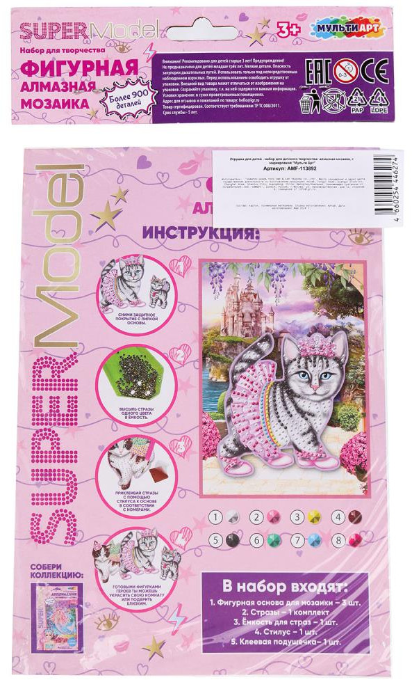 Multi Art Мозаика алмазная фигурнаяВ данный момент этот товар отсутствует в продаже. Возможно, у нас найдется аналогичный или похожий товар здесь. Серия: Super Model Набор для детского творчества — фигурная алмазная мозаика из серии «SuperModel» ТМ «Мульти Арт» — отличный подарок для ребёнка, который будет способствовать развитию его творческих способностей. При помощи этого набора маленький художник сможет создать красивые картинки-мозаики в виде милых питомцев, декорированные сверкающими стразами. Яркую блестящую поделку можно подарить близким или использовать для украшения комнаты. Творческие занятия с алмазной мозаикой ТМ «Мульти Арт» обладают успокаивающим действием, а также развивают: творческое мышление, цветовое восприятие, усидчивость, внимание и аккуратность. |