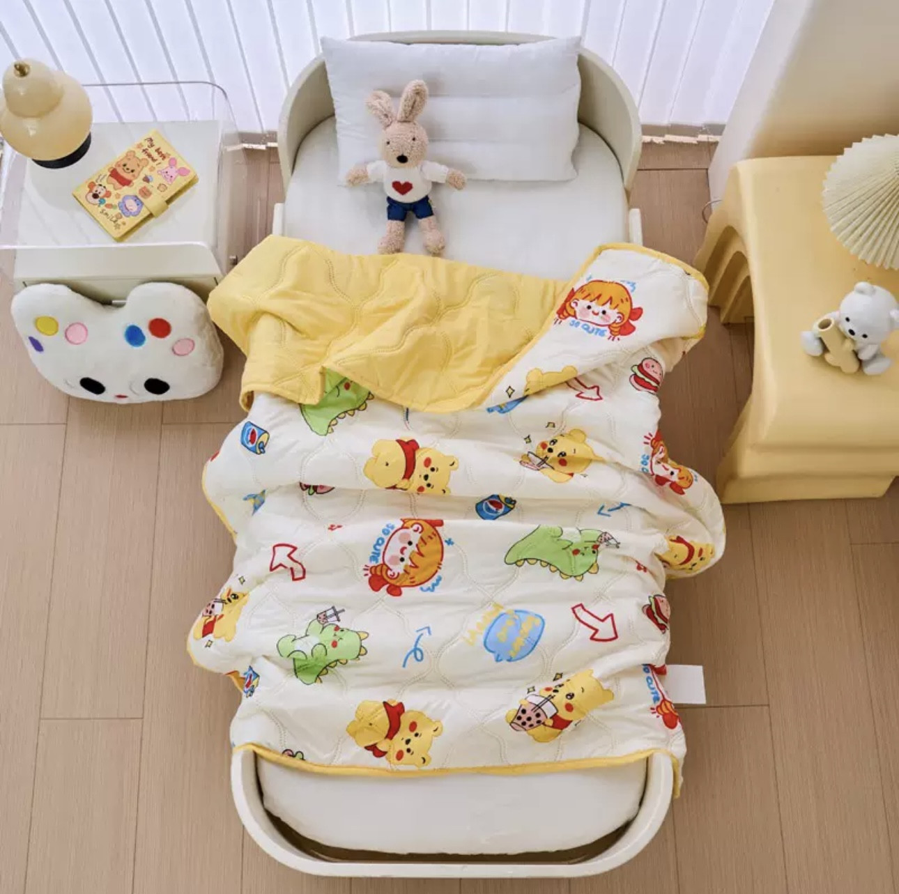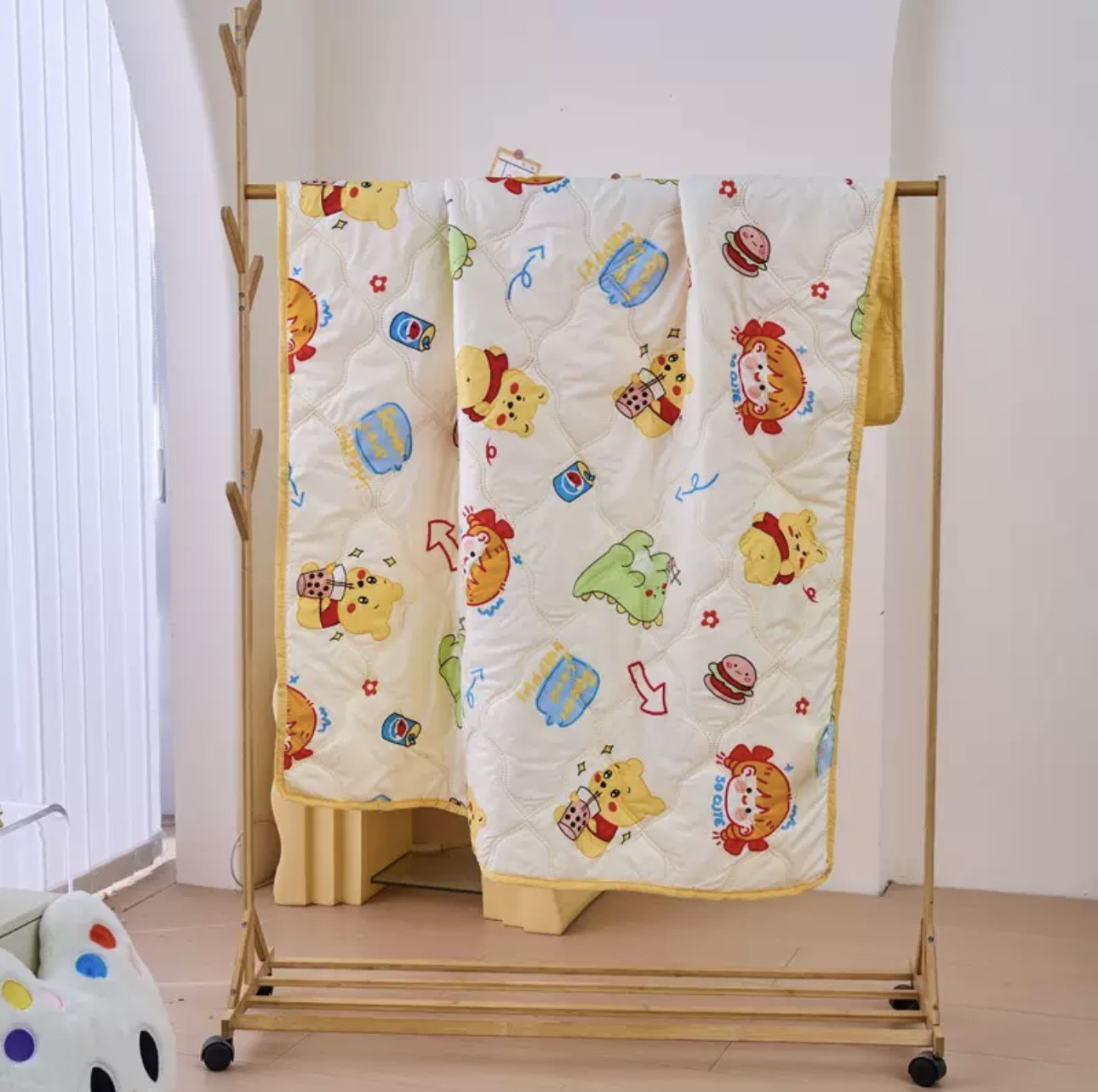 Это всесезонное детское одеяло станет настоящей находкой зимой когда в квартире душно из-за отопления и летом, когда стоит жара и постоянно работает кондиционер. Самое важное: материал чехла и наполнитель — все выполнено из 100% Синьцзянского хлопка. Ткань чехла очень мягкая, нежная. Синьцзянский хлопок очень славится именно этими свойствами, считается элитным сырьем. Плотность наполнителя 125 гр./ кв.м.