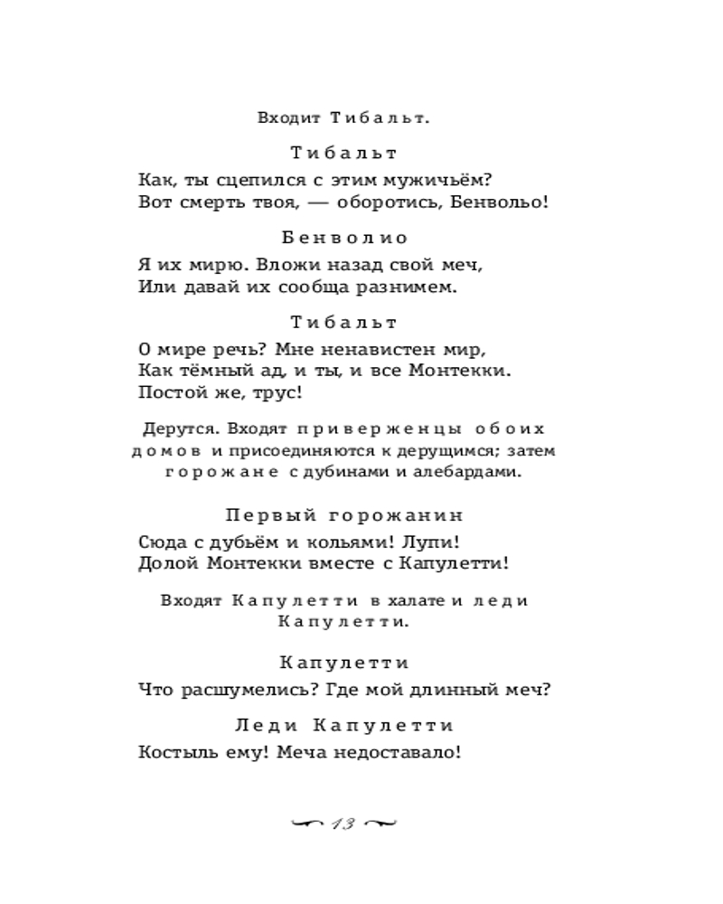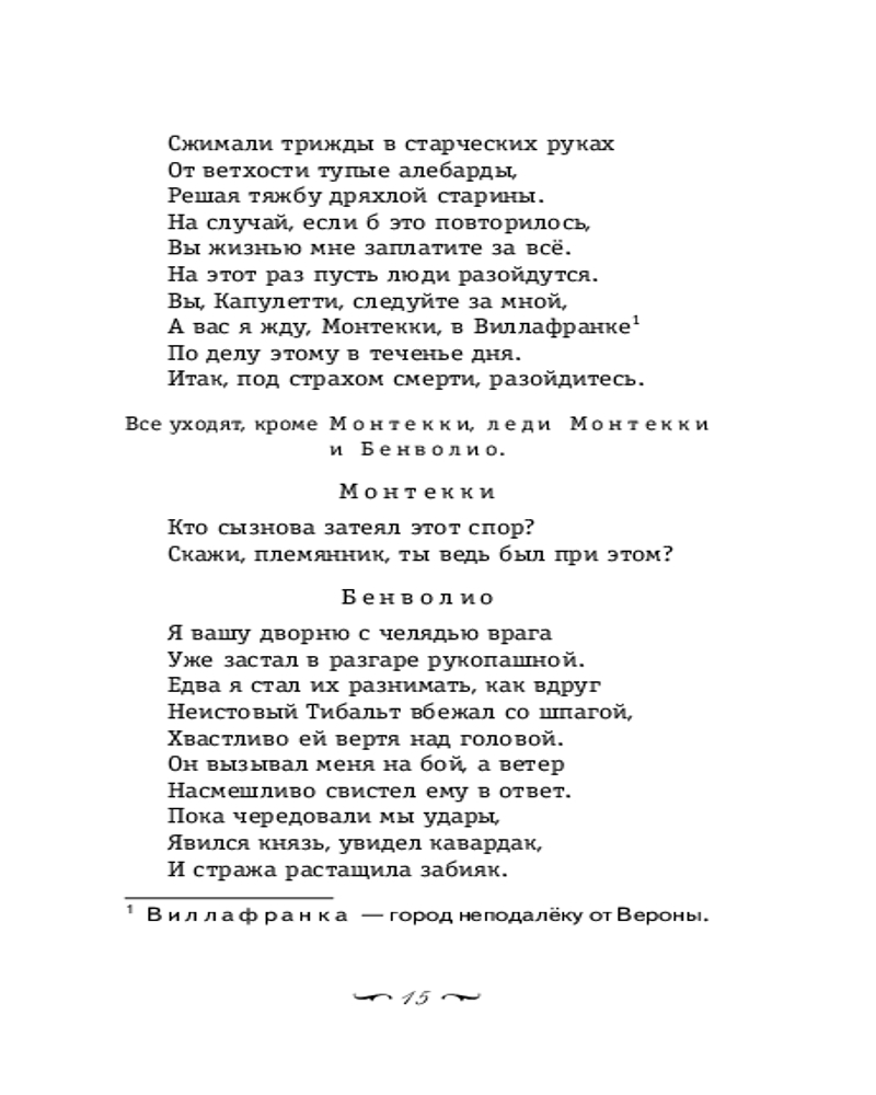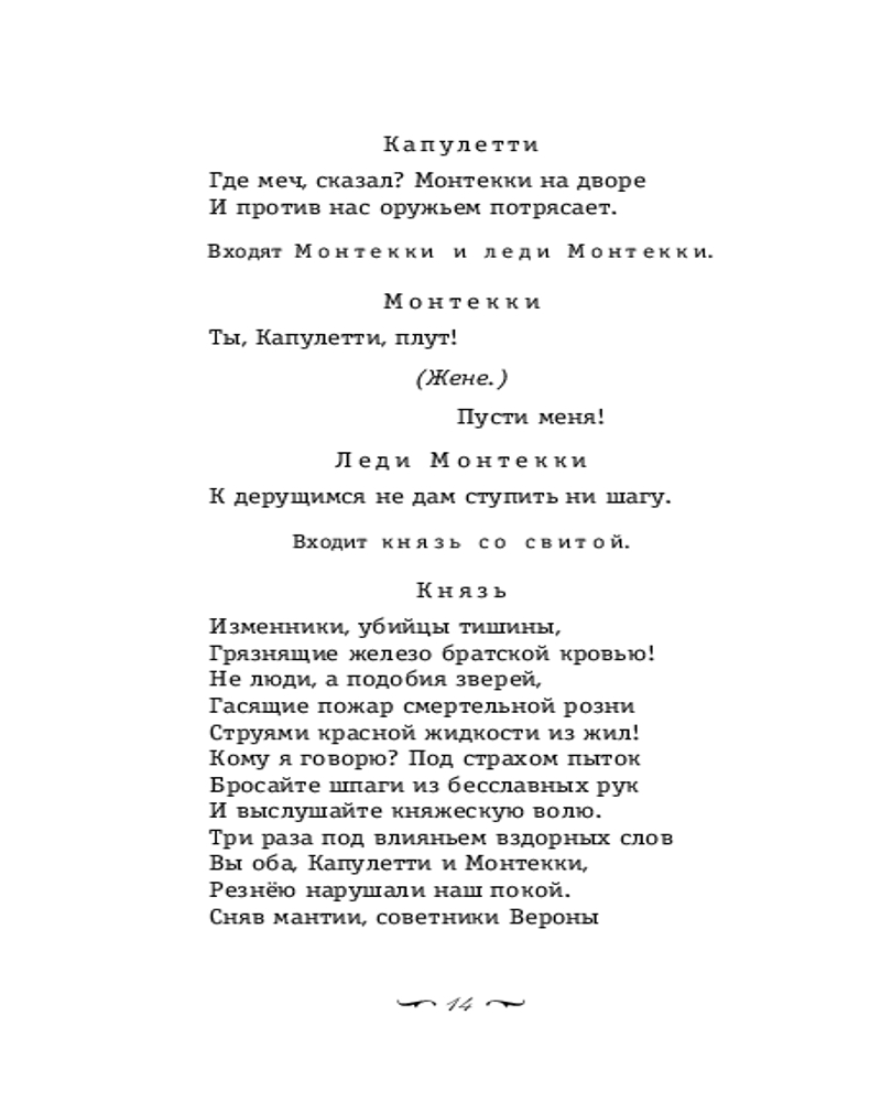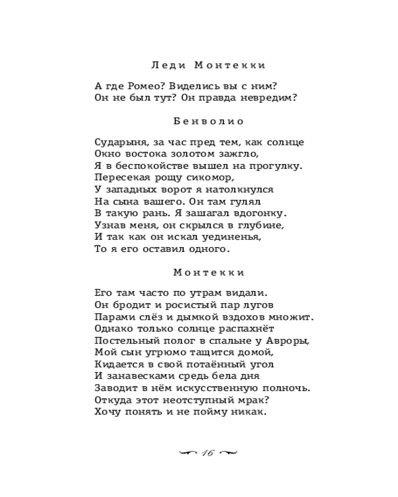 В книгу вошли великие произведения Вильяма Шекспира: пьеса «Ромео и Джульетта», сонеты. В «Ромео и Джульетте» история любви двух молодых людей рассказана так выразительно и динамично, что на протяжении веков ее ставят во всех театрах мира, а с появлением кинематографа — экранизируют ведущие режиссеры. Имена влюбленных из Вероны стали символом безграничной любви. А строки сонетов по-прежнему звучат в нас эхом собственных мыслей и переживаний. Каждому понятны слова, обращенные к любимому: «И кажется великолепной тьма, когда в нее ты входишь светлой тенью». Мало кто из писателей умел столь просто и ясно говорить с человеком о человеке, чтобы спустя столетия быть близким и понятным читателю. Пьеса и сонеты представлены в переводах талантливых поэтов: Бориса Пастернака и Самуила Маршака. Оба перевода объединяют современный язык, выразительность и лаконичность. Потому они по праву считаются лучшими. |