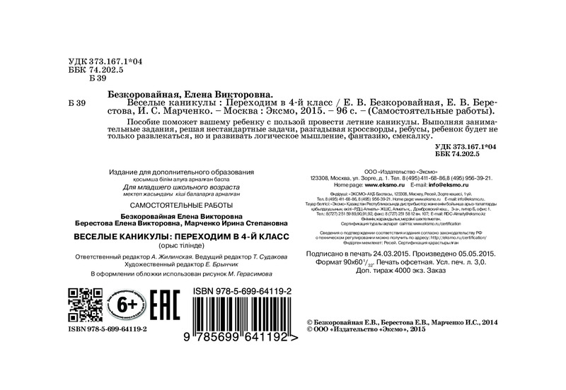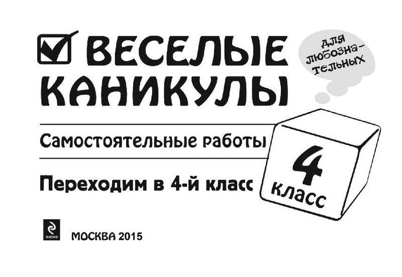 Веселые каникулы. Переходим в 4-й классИрина Степановна Марченко, Елена Викторовна Безкоровайная, Елена Владимировна Берестова В данный момент этот товар отсутствует в продаже. Возможно, у нас найдется аналогичный или похожий товар здесь. Серия: Самостоятельные работы Пособие поможет вашему ребенку с пользой провести летние каникулы. Выполняя занимательные задания, решая нестандартные задачи, разгадывая кроссворды, ребусы, ребенок будет не только развлекаться, но и развивать логическое мышление, фантазию, смекалку, научится наблюдать и самостоятельно работать. |