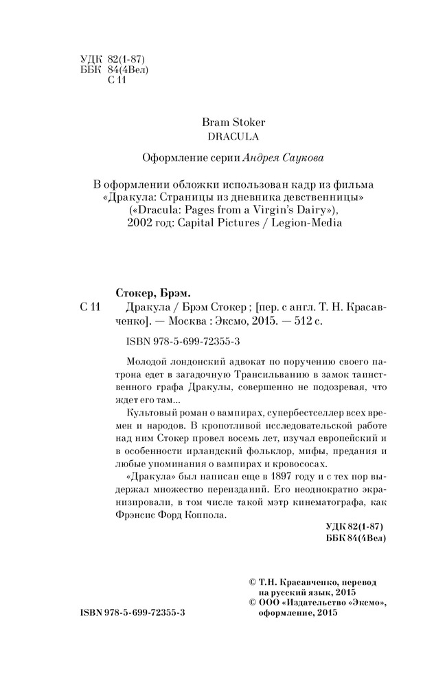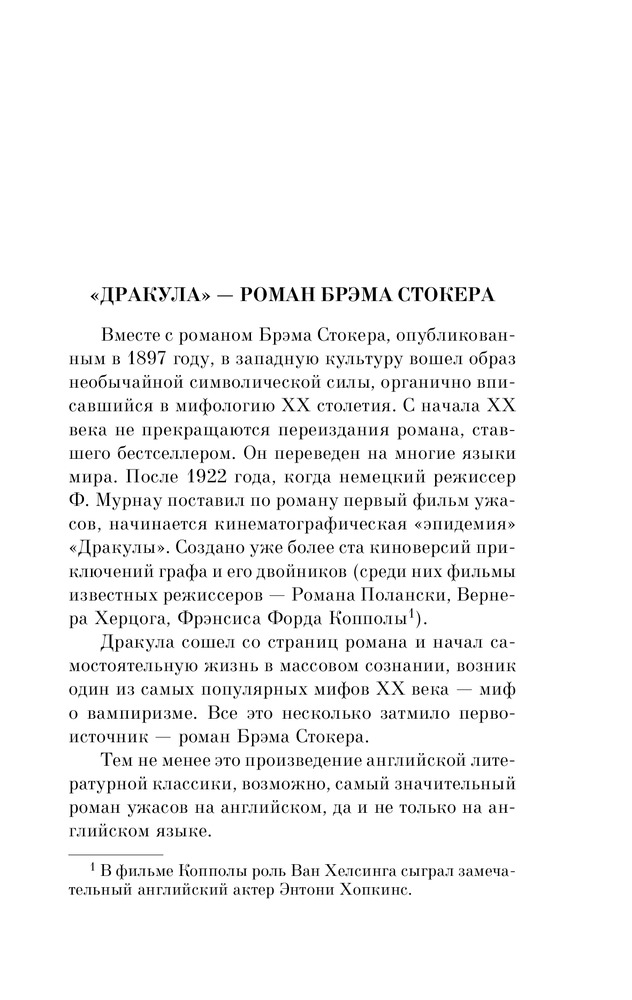 «Дракула» был написан еще в 1897 году и с тех пор выдержал множество переизданий. Его неоднократно экранизировали, в том числе такой мэтр кинематографа, как Фрэнсис Форд Коппола. |