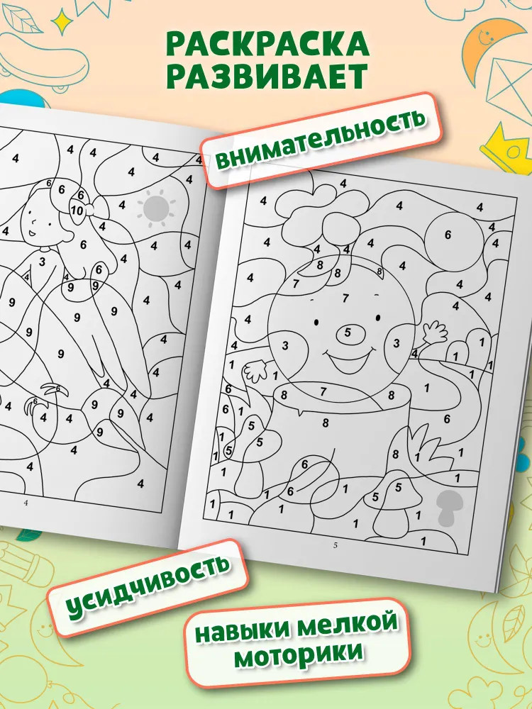 Серия: Раскраска со смыслом Раскраски по номерам помогут вашему ребенку с пользой провести время, в игровой форме развивая у него внимательность, усидчивость и навыки мелкой моторики, а также закрепить начальные навыки счёта. Получившийся маленький шедевр можно повесить на стену. Для детей 3+. |