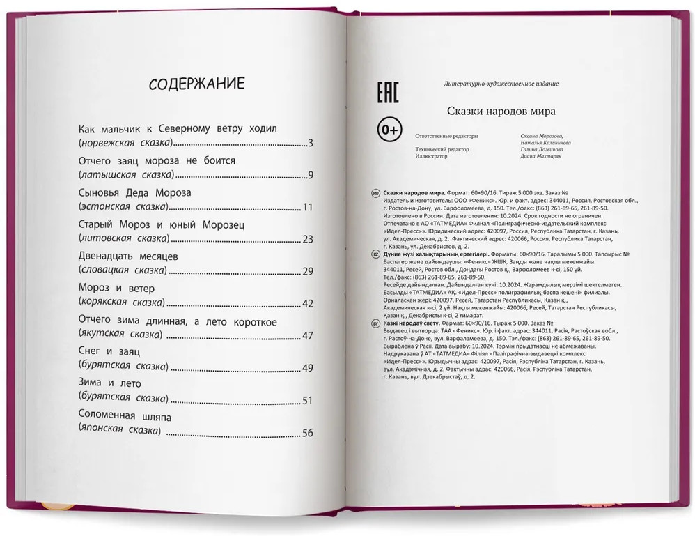 💳 Оплатить за товар можно при получении 🇰🇿 Есть бесплатная доставка по Казахстану 🎁 Копите бонусы с каждой покупки Серия: Хорошие сказки В сборник вошли сказки разных народов: норвежцев, латышей, эстонцев, литовцев, словаков, коряков, якутов, бурятов, японцев. Вы найдёте здесь сказки про зиму и лето, про мороз и ветер, про приключения Марушки в зимнем лесу, про путешествие храброго мальчика в зимние владения Северного ветра. Любите сказки, читайте сказки детям, чтобы они росли и набирались мудрости вместе с героями сказок! |