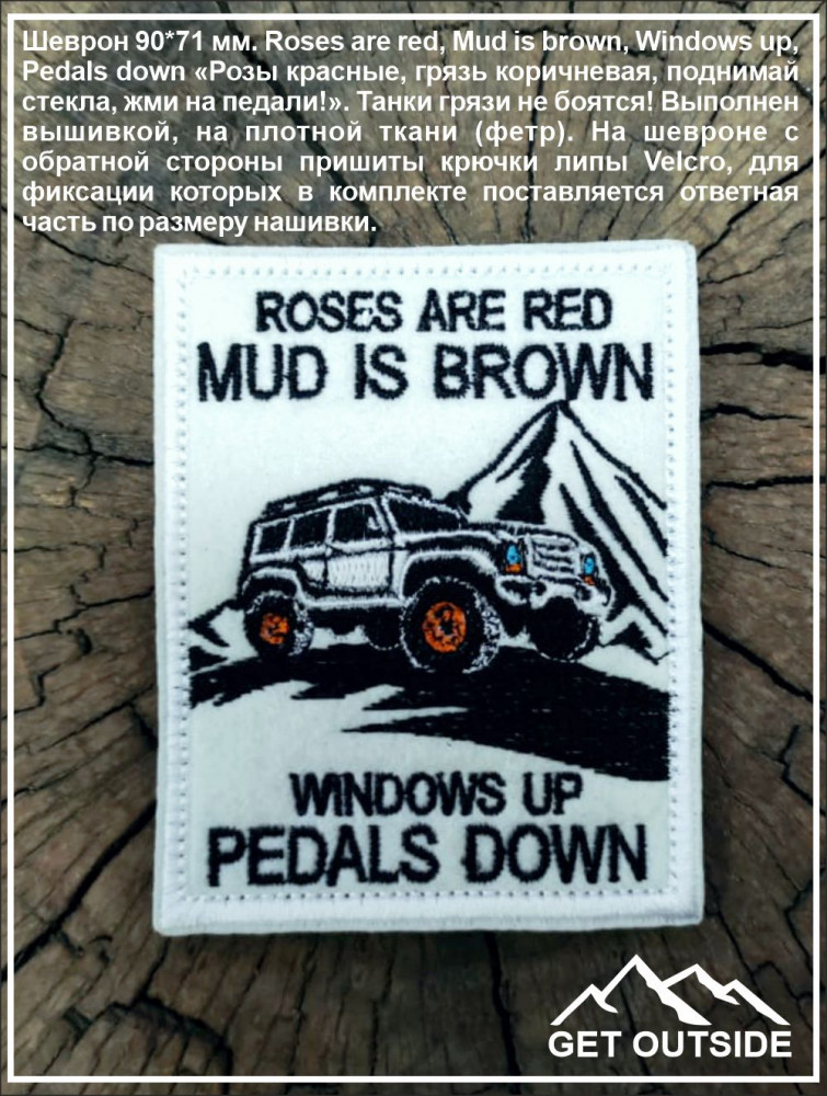 Get Outside Шеврон «Roses are red, Mud is brown, Windows up, Pedals down»