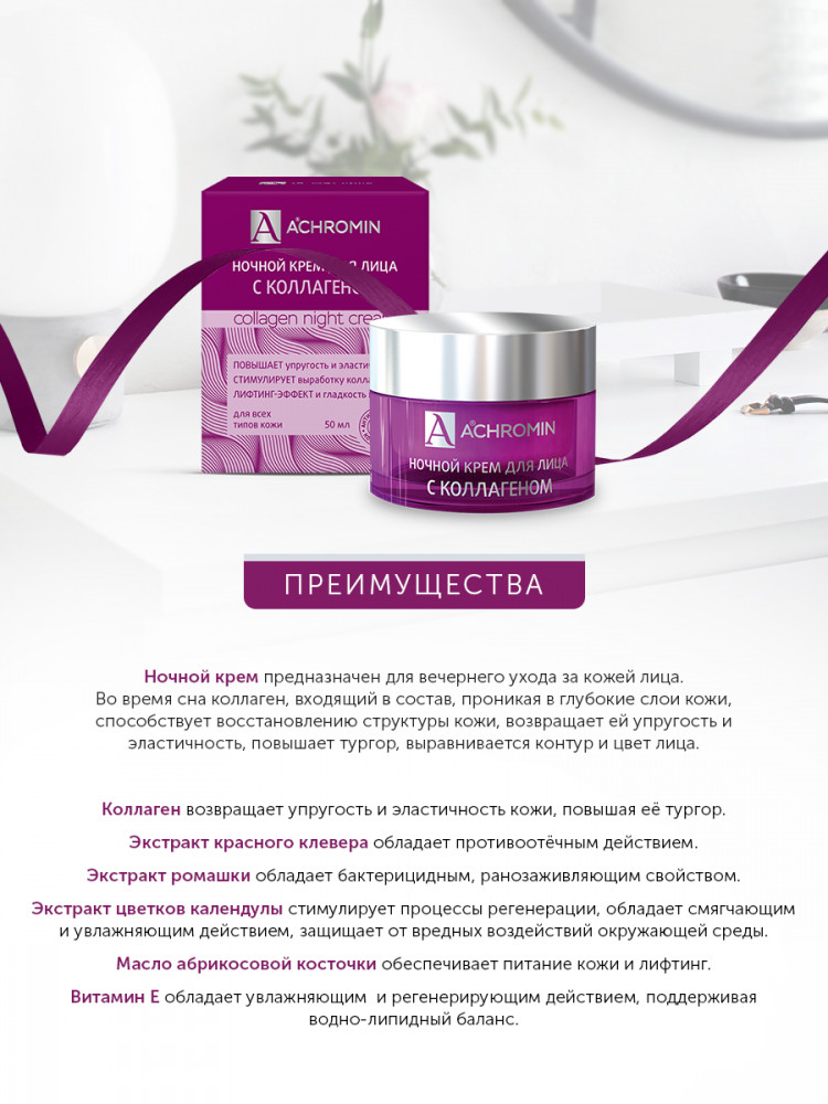 Achromin Крем для лица ночной с коллагеном «Collagen night cream»