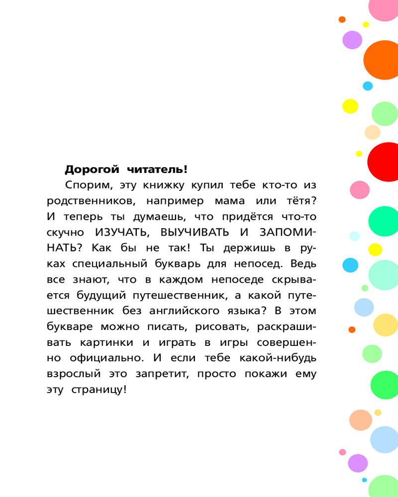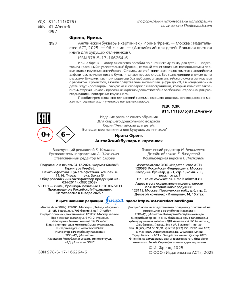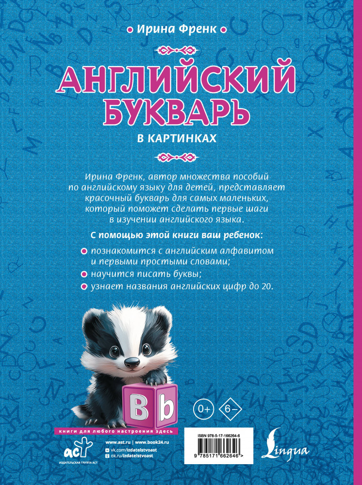 Английский букварь в картинкахВ данный момент этот товар отсутствует в продаже. Возможно, у нас найдется аналогичный или похожий товар здесь. Серия: Английский для детей. Большая цветная книга для будущих отличников Ирина Френк — автор множества пособий по английскому языку для детей — подготовила красочный и увлекательный букварь, который станет отличным помощником на первых этапах изучения английского. С помощью этой книги дети познакомятся с английским алфавитом, научатся писать буквы и узнают первые слова. Все транскрипции в тексте даны русскими буквами, так что и родители без глубокого знания английского смогут заниматься с ребенком. Кроме того, в книге представлены английские цифры до 20, а в конце учебника детей ждут кроссворды, раскраски и словарик с иллюстрациями, который поможет закрепить материал. Яркие и красочные картинки делают пособие особенно интересным для разглядывания и повторения изученного. Пособие предназначено для занятий с детьми старшего дошкольного возраста, но может пригодиться и для учеников начальных классов. |