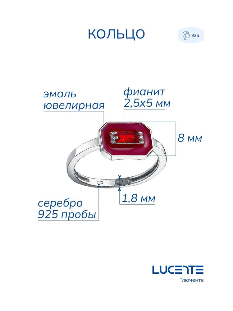 Lucente Silver Кольцо из серебра с эмалью и фианитом