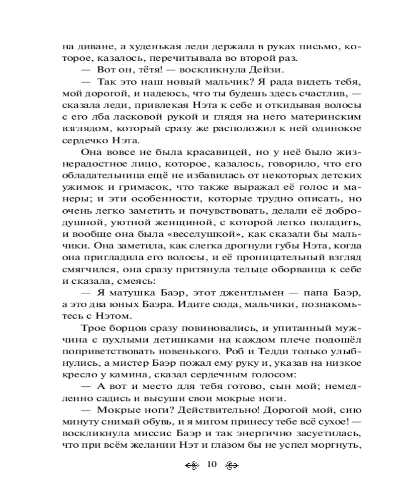 💳 Оплатить за товар можно при получении 🇰🇿 Есть бесплатная доставка по Казахстану 🎁 Копите бонусы с каждой покупки Серия: Всемирная литература (новое оформление) Прежде чем стать всемирно известным автором, Л.М. Олкотт (1832–1888) работала медсестрой во время Гражданской войны, боролась с рабством, была одной из первых участниц движения за предоставление женщинам избирательных прав. Она смотрела на мир и писала о нем так же, как жила, — с верой в будущее, с любовью и состраданием к людям. Верность жизненной правде и высоким идеалам, юмор и неугасимый оптимизм всегда будут привлекать к ее книгам юных и взрослых читателей. После оглушительного успеха «Маленьких женщин» и «Хороших жен» Олкотт создала третий роман о девушках семейства Марч — «Маленькие мужчины». Неутомимая Джо открыла школу и дала приют сорванцам разных характеров и возрастов. Не придумывая строгих правил, она показывает, что добро способно творить чудеса. |