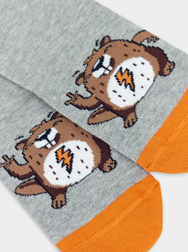 Детские носки из высококачественного хлопка с рисунком в виде сурка «Пятница». Натуральные волокна отлично пропускают воздух и впитывают влагу, дарят ощущение комфорта в течение дня. Благодаря небольшому количеству эластана в составе, высокие детские носки удобно сидят и не сползают, хорошо тянутся и легко надеваются. Пятка и мысок дополнительно укреплены для защиты от протирания. Резинка мягко, но надежно удерживает носки, не оставляя на коже следов.