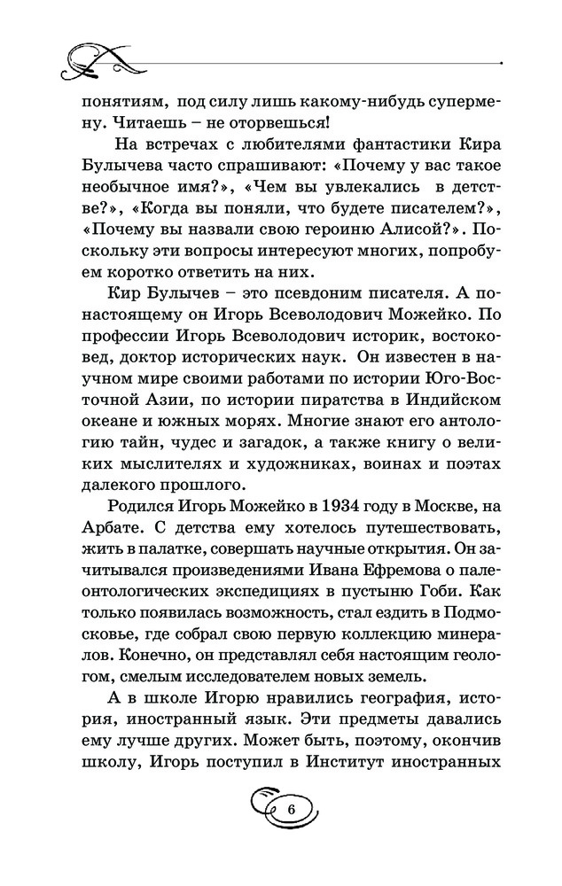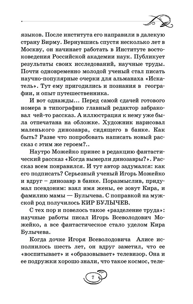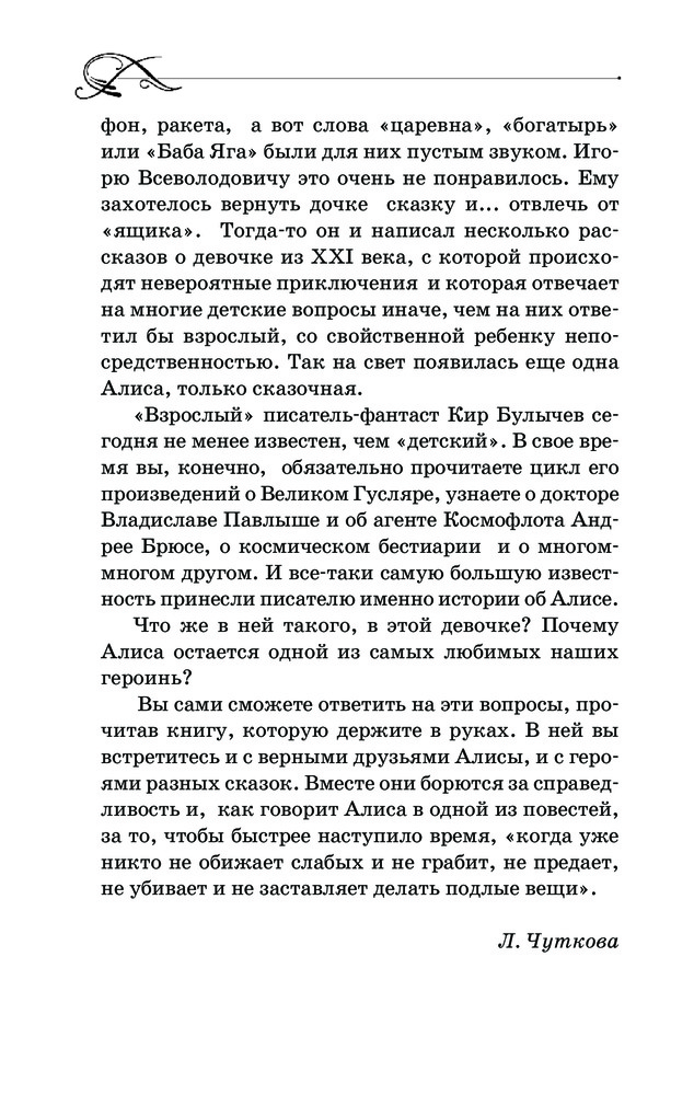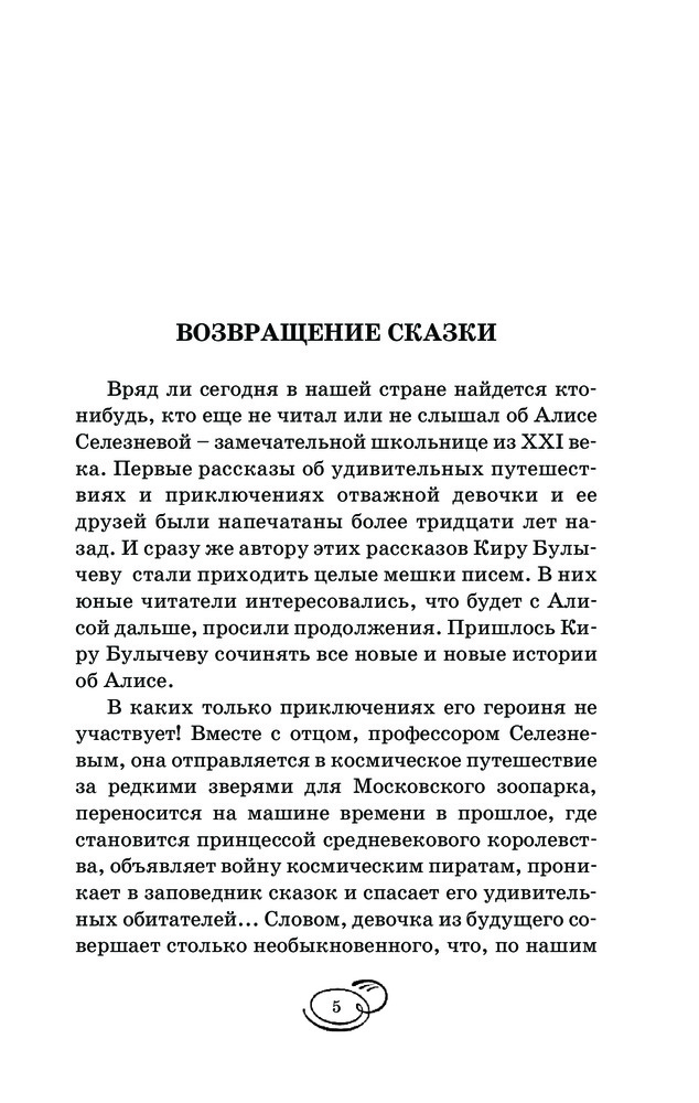 Я вообще очень люблю Кира Булычева и читала много его произведений. А эта книга совмещает в себе сказочный мир с современными космическими приключениями. Я купила ее для внуков, но и сама читаю с удовольствием :). Книга к тому же прекрасно издана, хорошая белая бумага, крупный шрифт, красивая обложка. Я довольна покупкой.