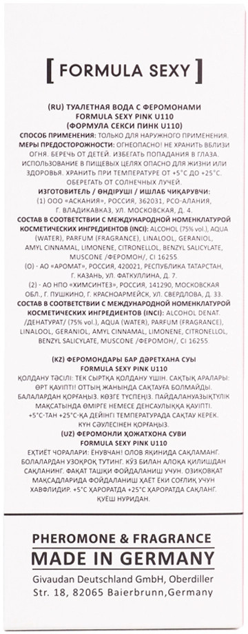 Formula Sexy Туалетная вода с феромонами «Pink U110»