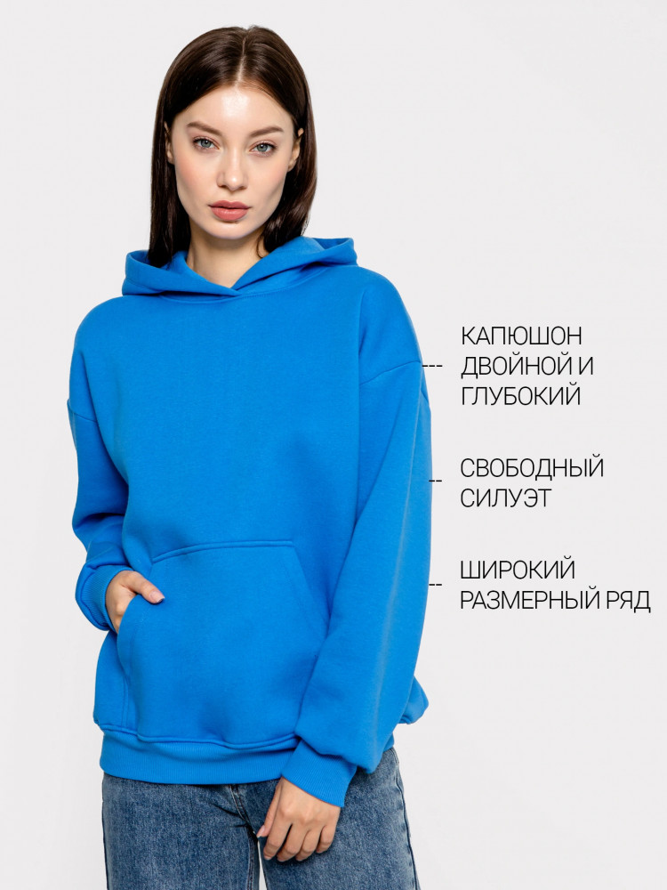 Стильное худи женское оверсайз с капюшоном и карманом-кенгуру. Выполнено из высококачественного хлопка. Вырез горловины круглой формы. Рукава типа реглан, с широкими манжетами. Мягкий и приятный материал — футер с подчесом обеспечивает тепло и комфорт, у толстовки женской деликатные швы. Отличный повседневный вариант на работу, в школу и университет. Дополнить можно низом в тон из линейки базовой одежды для женщин.