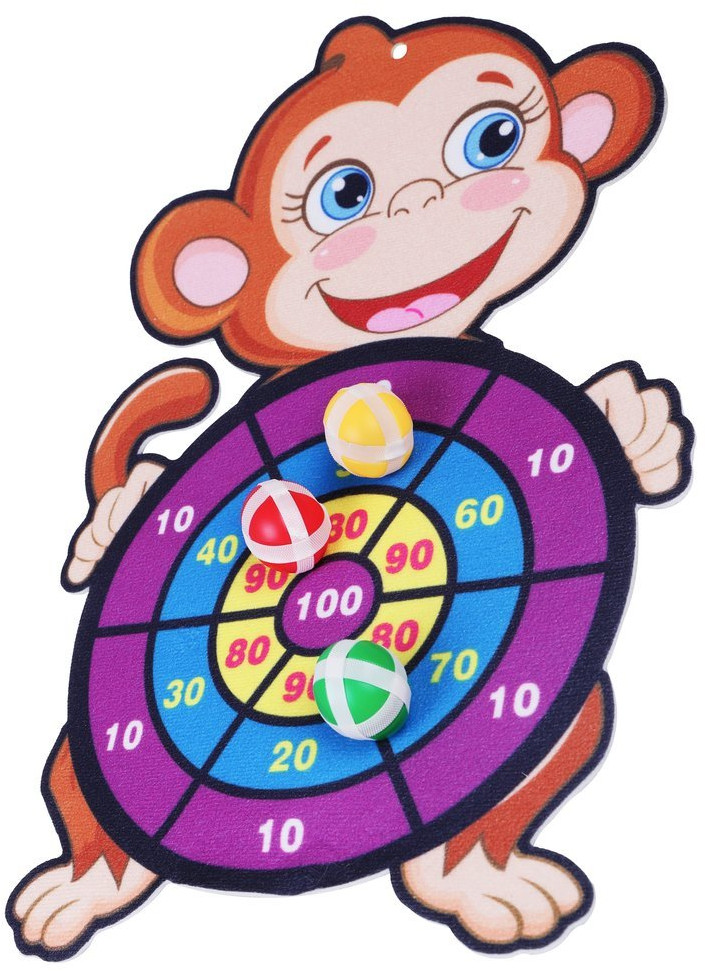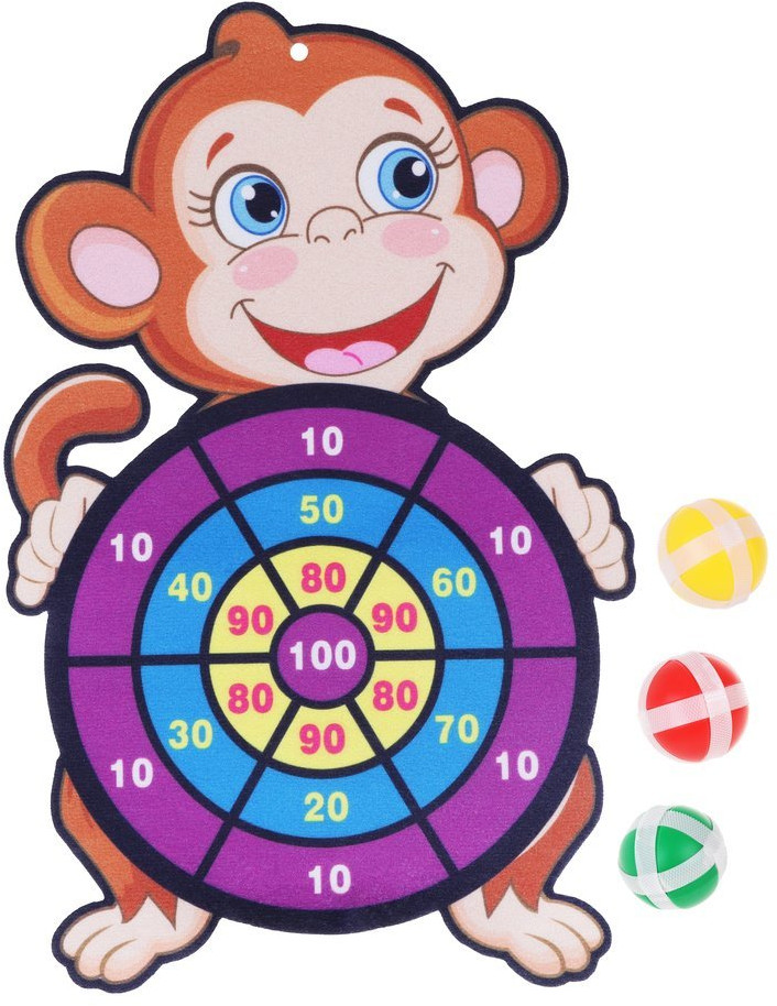 Наша игрушка Дартс детский на липучках «Весёлая обезьянка»В данный момент этот товар отсутствует в продаже. Возможно, у нас найдется аналогичный или похожий товар здесь. Дартс — игра, которая поможет ребенку развить ловкость, меткость и координацию движений. В мишень, поделенную на сектора, стреляют мячиками на липучках, стараясь набрать как можно больше очков. Снаряды прилипают к мягкой мишени. В отличие от дартс с металлическими дротиками, дартс на липучках «Веселая обезьянка» безопасен даже для самых маленьких игроков. В комплекте — игровое поле и 3 шарика на липучках. |