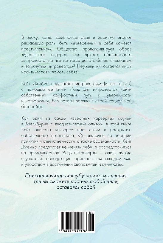 💳 Оплатить за товар можно при получении 🇰🇿 Есть бесплатная доставка по Казахстану 🎁 Копите бонусы с каждой покупки Серия: Популярная психология для бизнеса и жизни В эпоху, когда самопрезентация и харизма играют решающую роль, быть неуверенным в себе кажется преступлением. Общество пропагандирует образ «идеального лидера» как яркого общительного экстраверта, но что же тогда делать более спокойным и замкнутым интровертам? Неужели им остается лишь носить маски и ломать себя? Кейт Джеймс предлагает интровертам (и не только) с помощью ее книги «Гайд для интроверта» найти собственный комфортный путь к уверенности и нетворкингу, без потери заряда в своей социальной батарейке. |