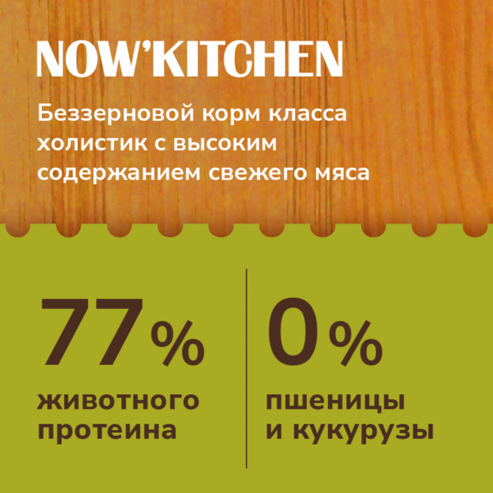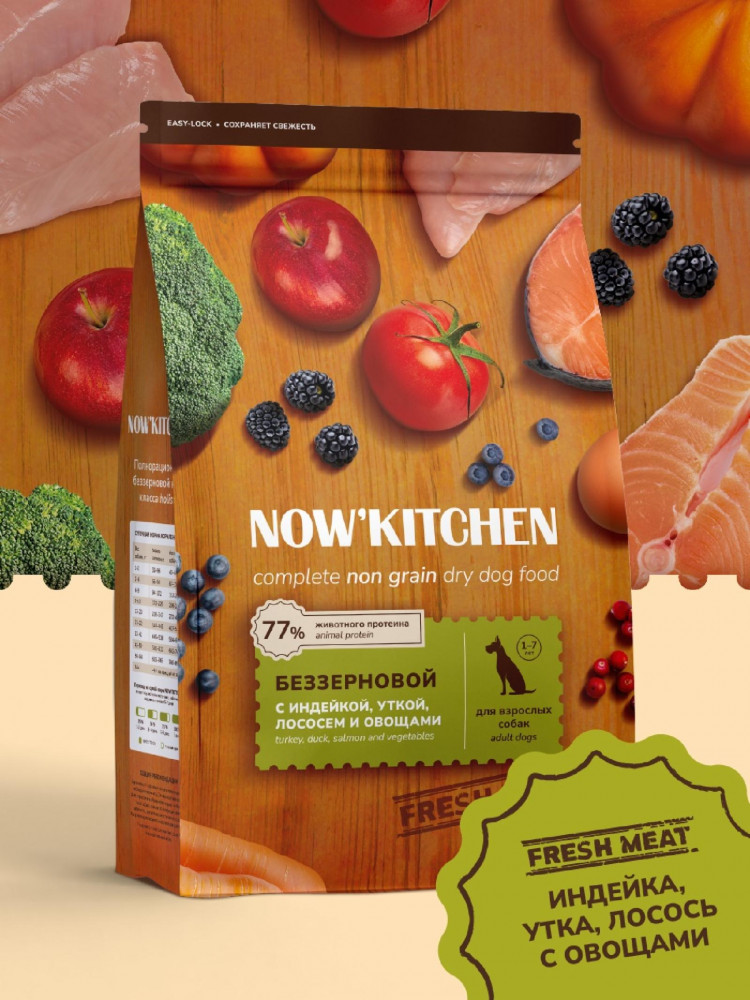 Now'Kitchen Корм беззерновой для взрослых собак с индейкой, уткой, лососем и овощами «Adult Grain-free Recipe, Turkey, Duck, Salmon»