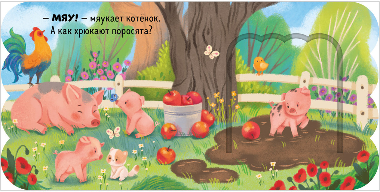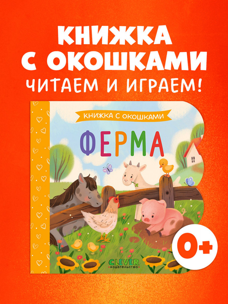 ФермаВ данный момент этот товар отсутствует в продаже. Возможно, у нас найдется аналогичный или похожий товар здесь. Серия: Книжка с окошками Книжка с окошками «Ферма» познакомит вашего ребенка с животными, которые живут на ферме, и поможет в развитии мелкой моторики, речи, логики, внимания. А створки из плотного картона превратят ваши занятия в веселье! На каждом развороте маленький читатель найдет панорамную иллюстрацию, вопрос на сообразительность («Как хрюкают поросята?») и ответ, который спрятался в окошке («Хрю-хрю!»). Играйте, задавайте вопросы по картинкам, изучайте животных, которые живут на ферме. Книга сделана из плотного картона, так что створки прослужат долго и выдержат много веселых игр! Закругленные краешки не поранят малыша острыми углами. |