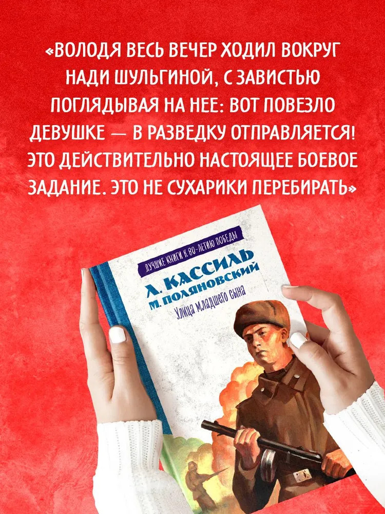 В данный момент этот товар отсутствует в продаже. Возможно, у нас найдется аналогичный или похожий товар здесь. Серия: История Победы К 80-летнему юбилею Победы в Великой Отечественной войне издательство Clever выпускает коллекцию шедевров — лучших классических произведений, посвященных героям Второй мировой войны. События повести Льва Кассиля и Макса Поляновского «Улица младшего сына» происходят в Керчи во время Великой Отечественной войны.