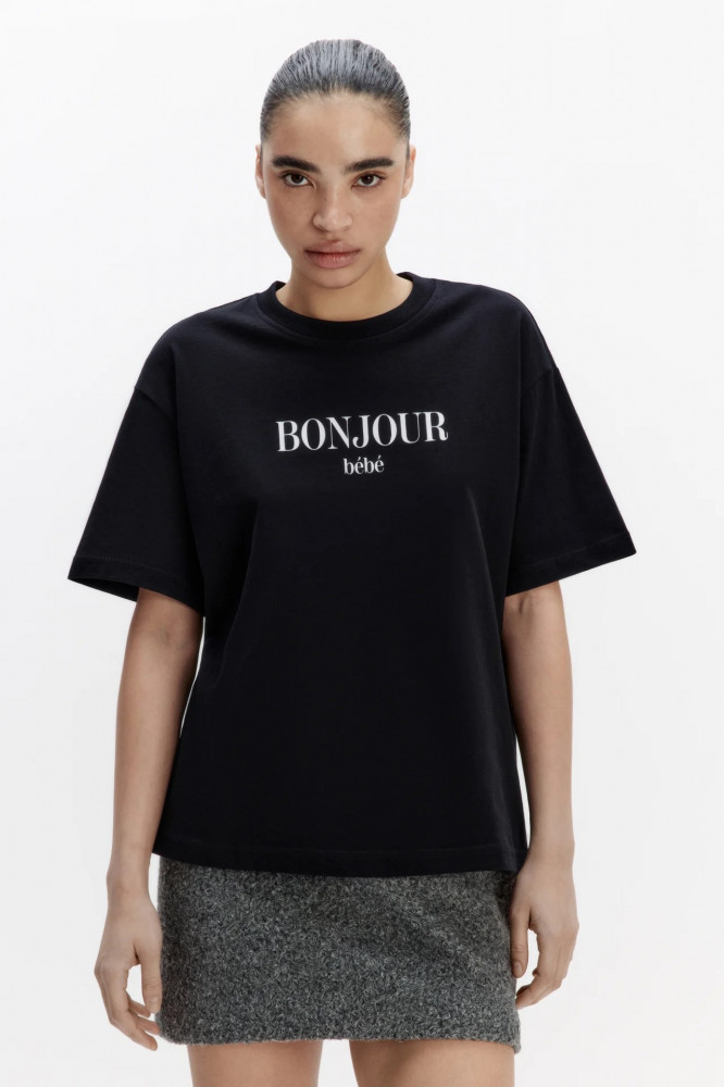 Удобная дышащая футболка из хлопка, в которой ты будешь чувствовать себя комфортно в любой ситуации. Хлопковая футболка с принтом-надписью из новой коллекции подойдет для привлекательных аутфитов на каждый день и по особым поводам. Создавай с ней образы в стиле гранж, сочетая с денимом, кожей, массивной обувью и острыми аксессуарами. Или спокойные образы на учебу и в офис, сочетая с классическим низом и накинув сверху пиджак или оверсайз-рубашку. Носи футболку отдельно или используй в качестве основы многослойных образов.