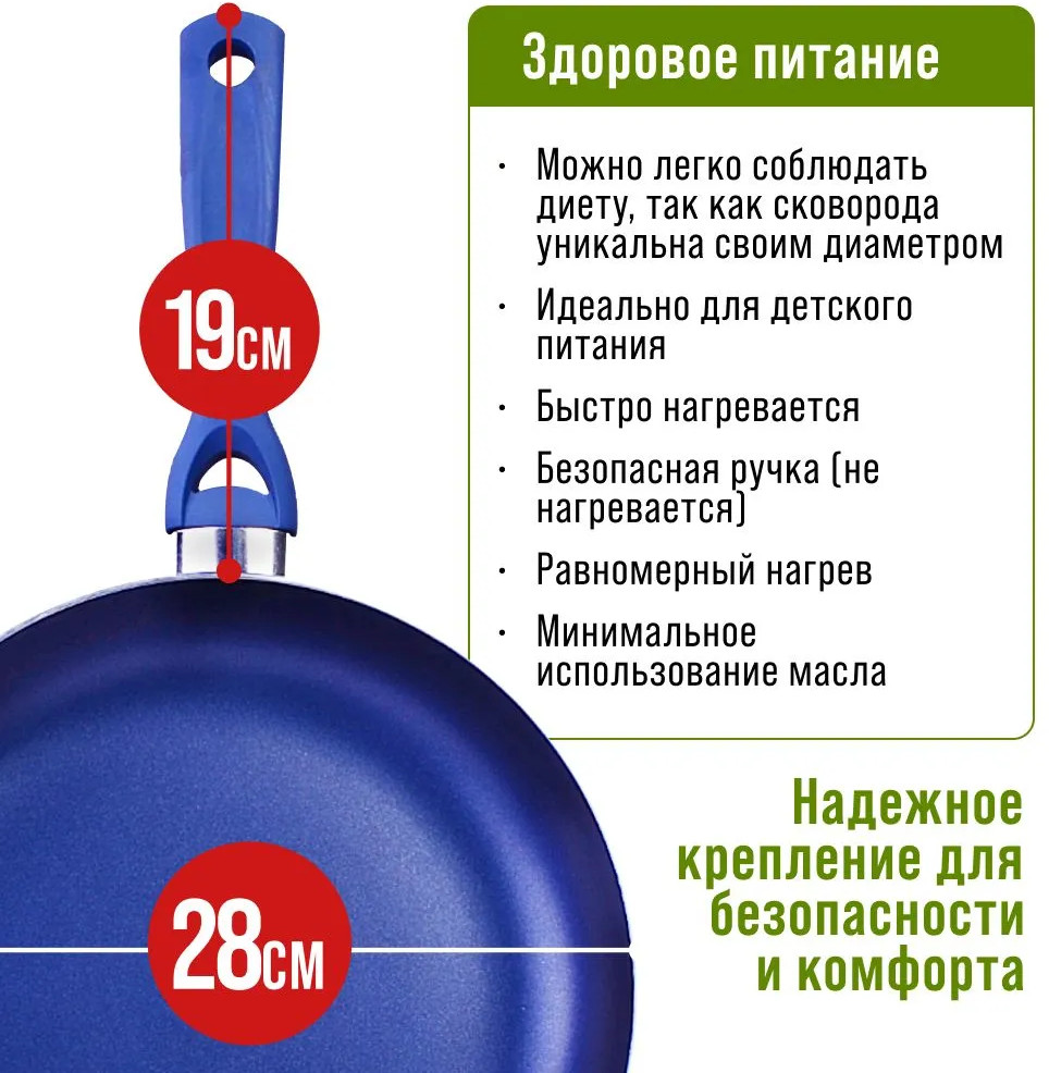 Еда, приготовленная с любовью и вниманием к деталям, всегда самая вкусная. Качественная сковорода с антипригарным покрытием MAYER&BOCH диаметром 28 см, объемом 3,1 л и эргономичной ручкой облегчит процесс готовки и подарит незабываемые впечатления. В большой сковороде для кухни, на завтрак можно пожарить почти без масла блины, оладьи, панкейки или яичницу. Высокие стенки сковороды позволят потушить овощи, а её универсальность подойдёт для разных типов плит, включая индукционные. Антипригарное покрытие гарантирует, что ваши блюда не пригорят даже при сильном нагреве. Бакелитовая ручка не нагревается и предотвращает скольжение, что делает её идеальным инструментом для приготовления пищи.