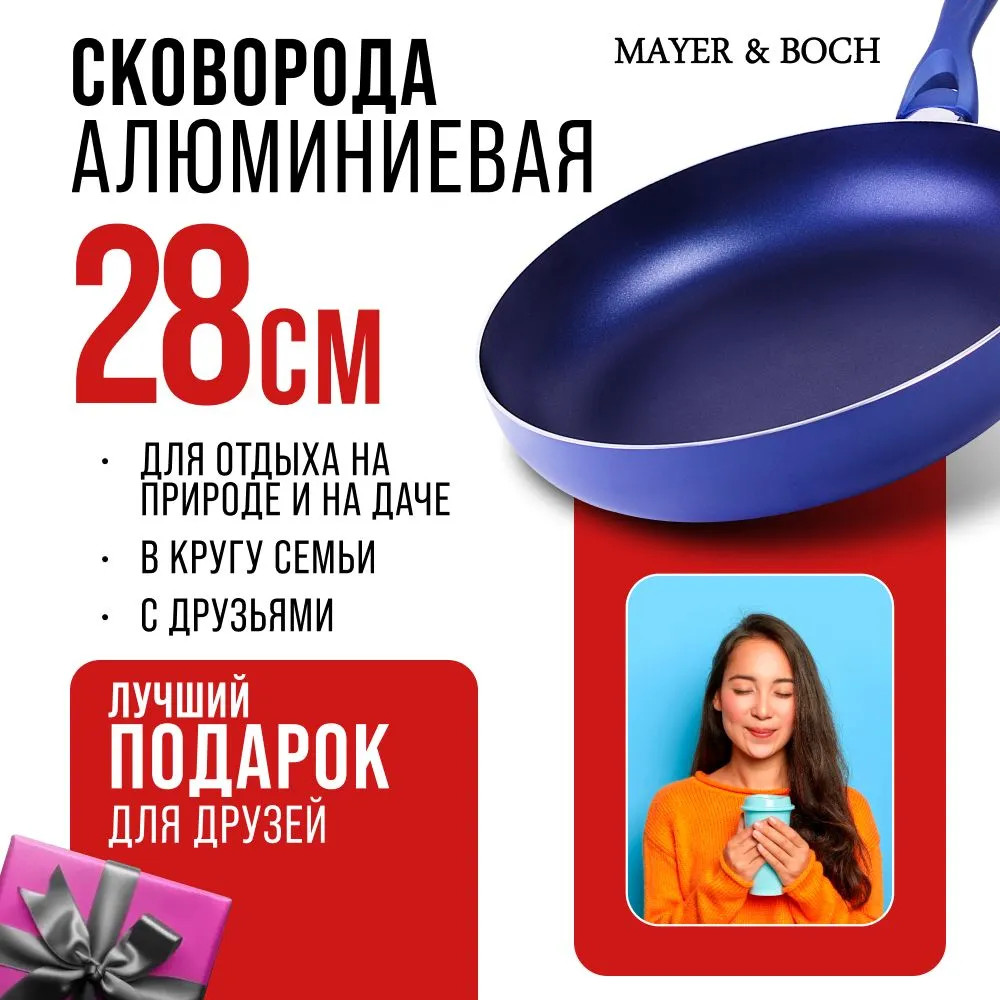 Сковорода антипригарная также помогает хозяйке сэкономить время, так как остатки еды легко удаляются салфеткой или губкой, а сковорода 28 см хорошо очищается под проточной водой. Сковорода для индукционной плиты можно мыть в посудомоечной машине, сохраняя антипригарные свойства. Для очистки используйте мягкое моющее средство и губку без абразива. Прочная алюминиевая сковорода сделана из высококачественных материалов и не деформируется при падении. Посуда MAYER&BOCH соответствует высоким стандартам качества и инновациям. Это отличный подарок на день рождения или Новый год для мамы, бабушки, сестры или подруги. Экспериментируйте с новыми рецептами, а наша кухонная утварь поможет реализовать самые смелые идеи.