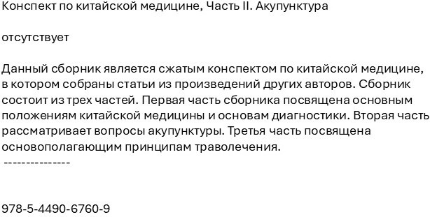 Конспект по китайской медицине. Часть II. АкупунктураВ данный момент этот товар отсутствует в продаже. Возможно, у нас найдется аналогичный или похожий товар здесь. Данный сборник является сжатым конспектом по китайской медицине, в котором собраны статьи из произведений других авторов. Сборник состоит из трех частей. Первая часть сборника посвящена основным положениям китайской медицины и основам диагностики. Вторая часть рассматривает вопросы акупунктуры. Третья часть посвящена основополагающим принципам траволечения. |