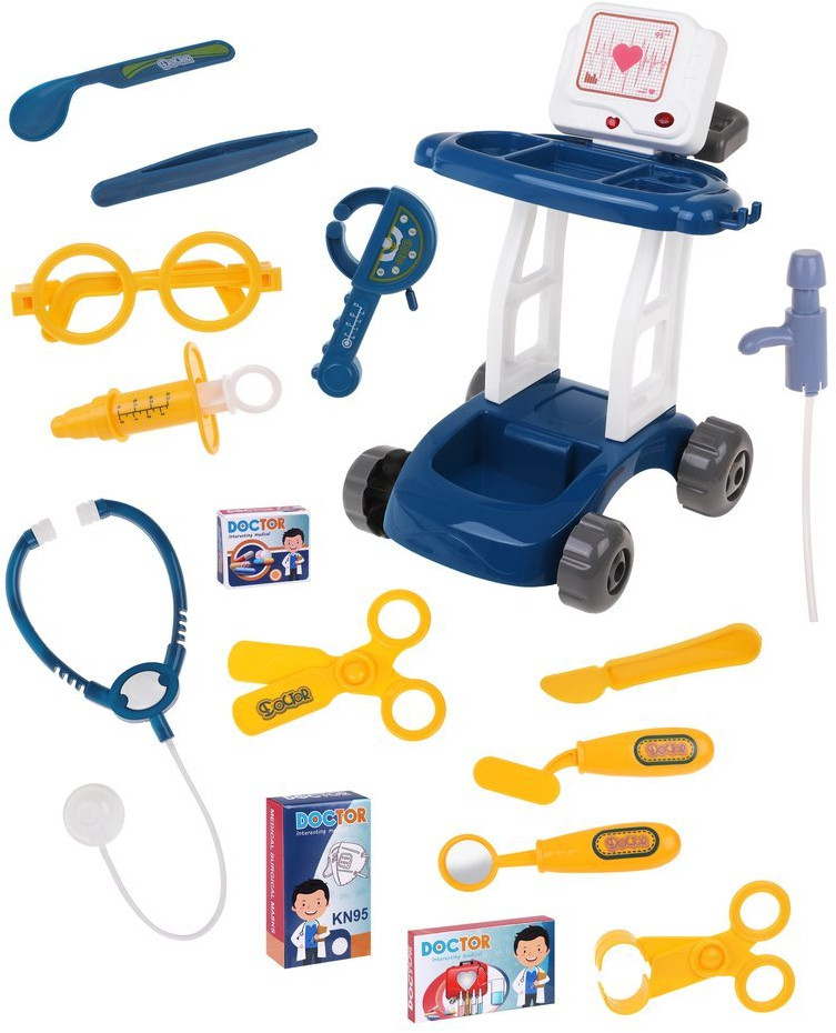 Ребенок мечтает стать врачом, когда вырастет? Подарите ему игровой набор «Доктор»! Вместе с предметами набора можно придумать интереснейшую сюжетно-ролевую игру, разыграть ситуацию «на приеме у врача». У монитора предусмотрены светозвуковые эффекты. Из крана льется вода. Такая игра способствует развитию коммуникативных навыков, фантазии и воображения.