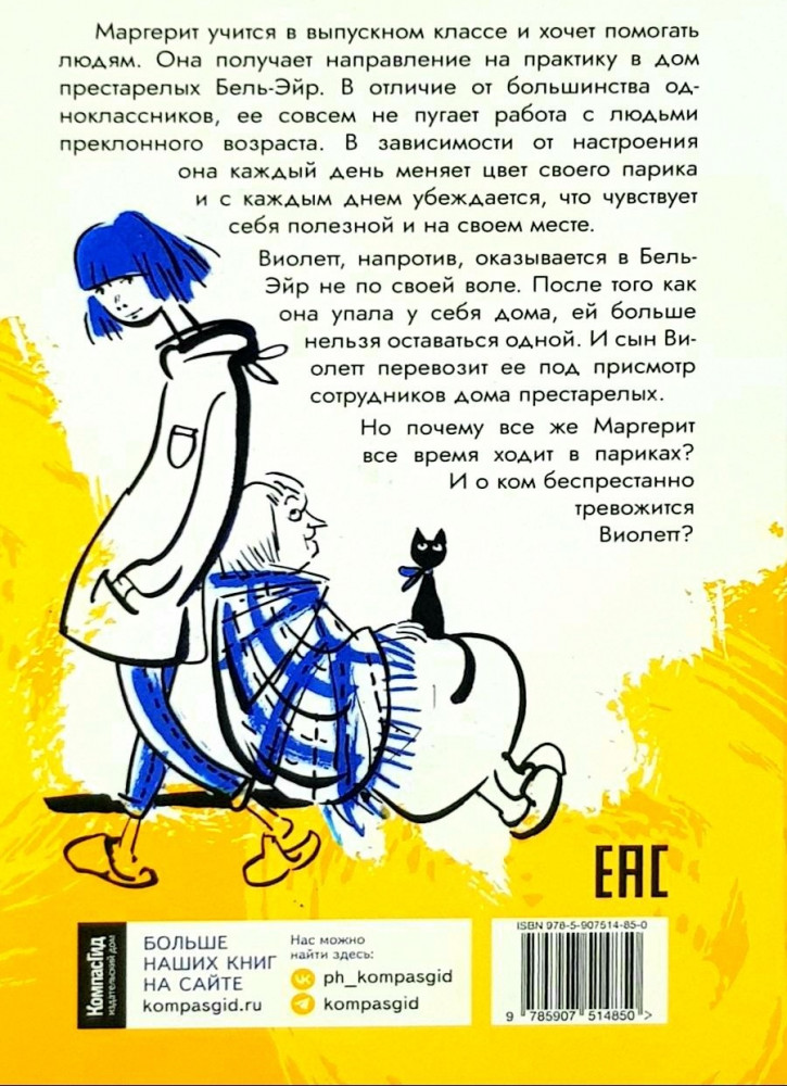 Фиалки цветут зимойВ данный момент этот товар отсутствует в продаже. Возможно, у нас найдется аналогичный или похожий товар здесь. Маргерит учится в выпускном классе и хочет помогать людям. Она получает направление на практику в дом престарелых Бель-Эйр. В отличие от большинства одноклассников, ее совсем не пугает работа с людьми преклонного возраста. В зависимости от настроения она каждый день меняет цвет своего парика и с каждым днем убеждается, что чувствует себя полезной и на своем месте. |