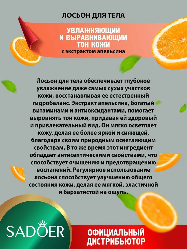 SADOER Увлажняющий лосьон для тела с экстрактом апельсина «Marshmallow»