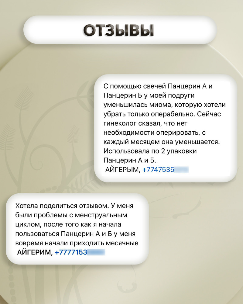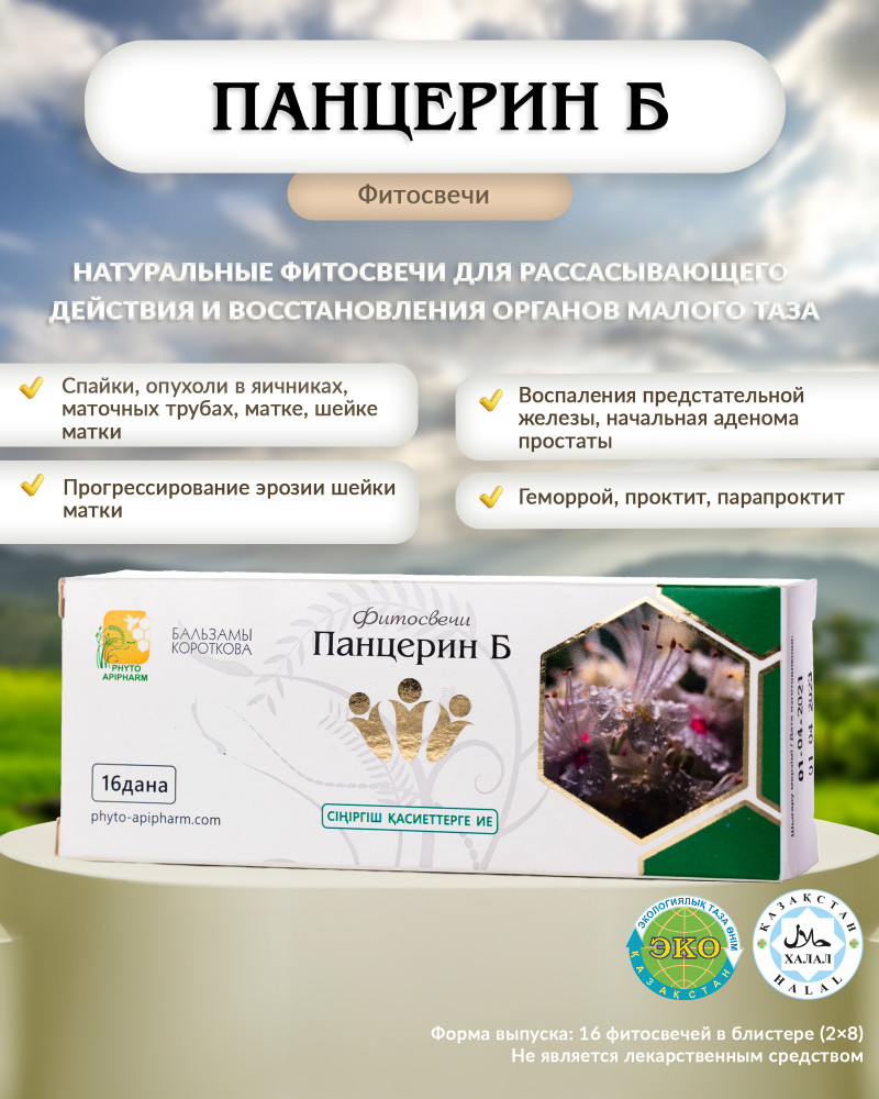 Противопоказания: индивидуальная непереносимость компонентов продукта. Побочные явления: не выявлены. Рекомендуется применять рассасывающие свечи «Панцерин Б» после применения противовоспалительных свечей «Панцерин А».