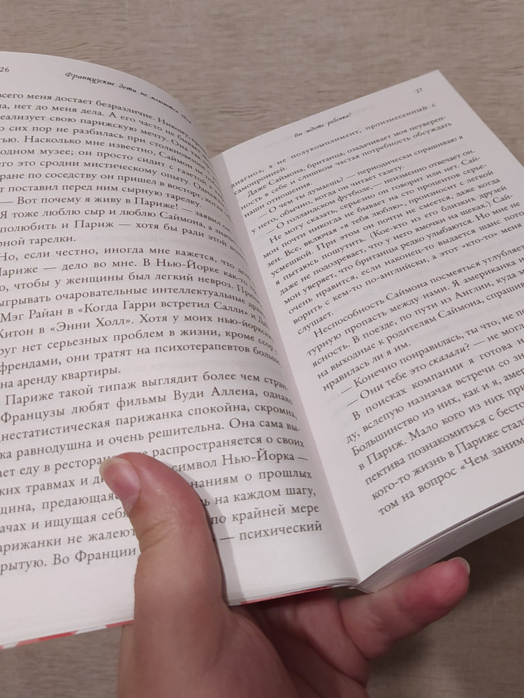 В этой книге она говорит о том, что детей нужно учить терпению. В самом начале книги говорится, что не учит и не навязывает как воспитывать детей, она пишет о своих наблюдениях во французских семьях. А также сравнивает воспитание детей между французами и американцами и делает для себя выводы, как лучше растить своих детей. В целом, книга неплохая, а команде Флип спасибо за быструю доставку и приемлемую цену. Удачи вам в работе и успехов в ваших делах.