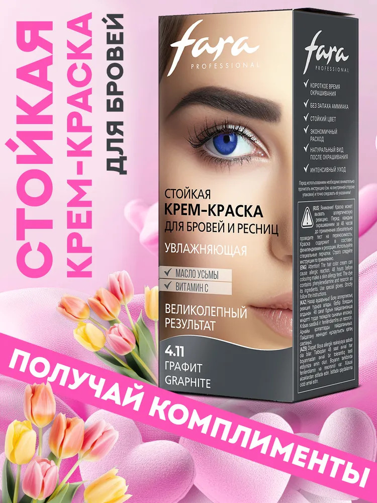 Fara Крем-краска для бровей и ресниц, оттенок 4.11 Графит