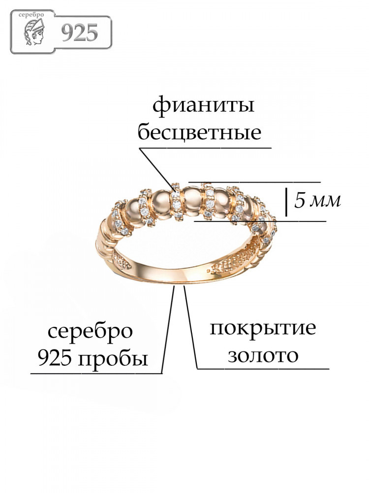 Lucente Silver Кольцо из золочёного серебра с фианитами