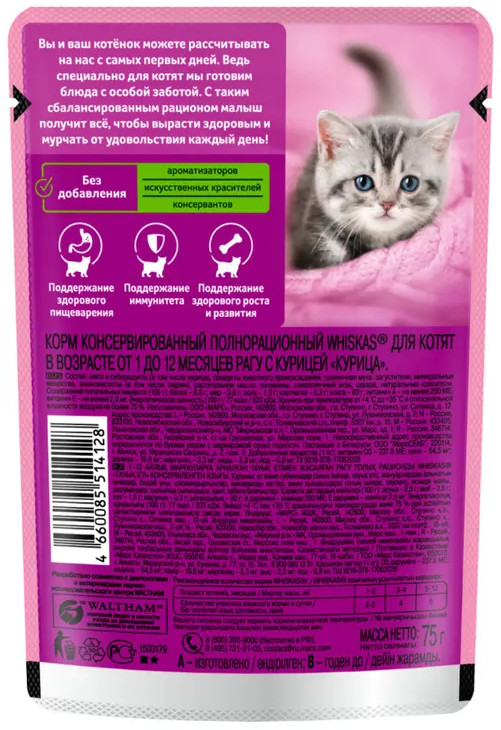 Whiskas Набор паучей для котят «Рагу с курицей»