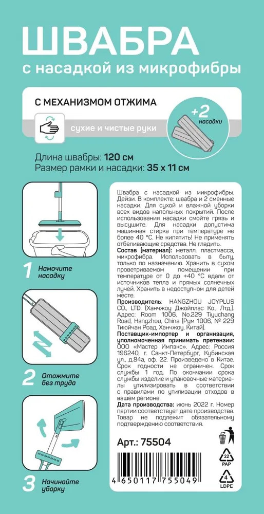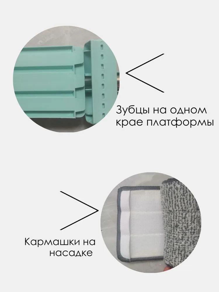 Размер насадки для швабры 35×11 см. На платформе швабры есть специальные липучки и крючки для крепления насадки. Насадку для швабры из микрофибры можно стирать в стиральной машине без кондиционера для белья.
